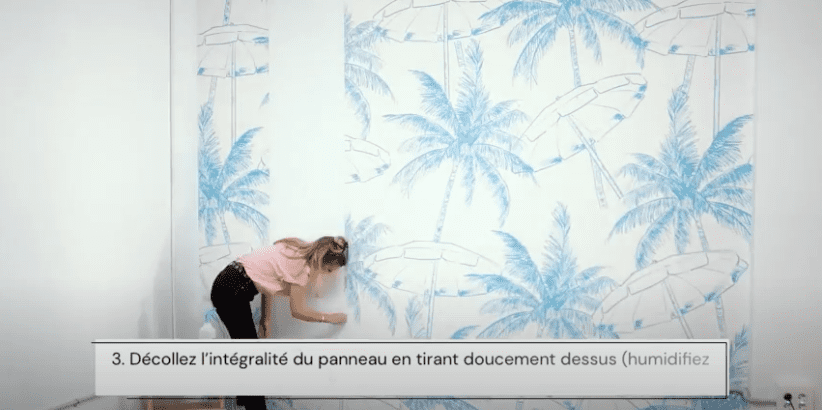En ce qui concerne le papier peint autocollant, il suffit juste de décoller l’intégralité des panneaux vers le bas en tirant doucement dessus.