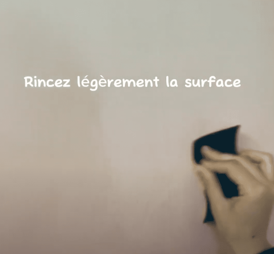 - Si le type de papier peint le permet, utilisez une éponge propre et de l’eau claire pour rincer légèrement la surface. Évitez de trop mouiller le papier peint.