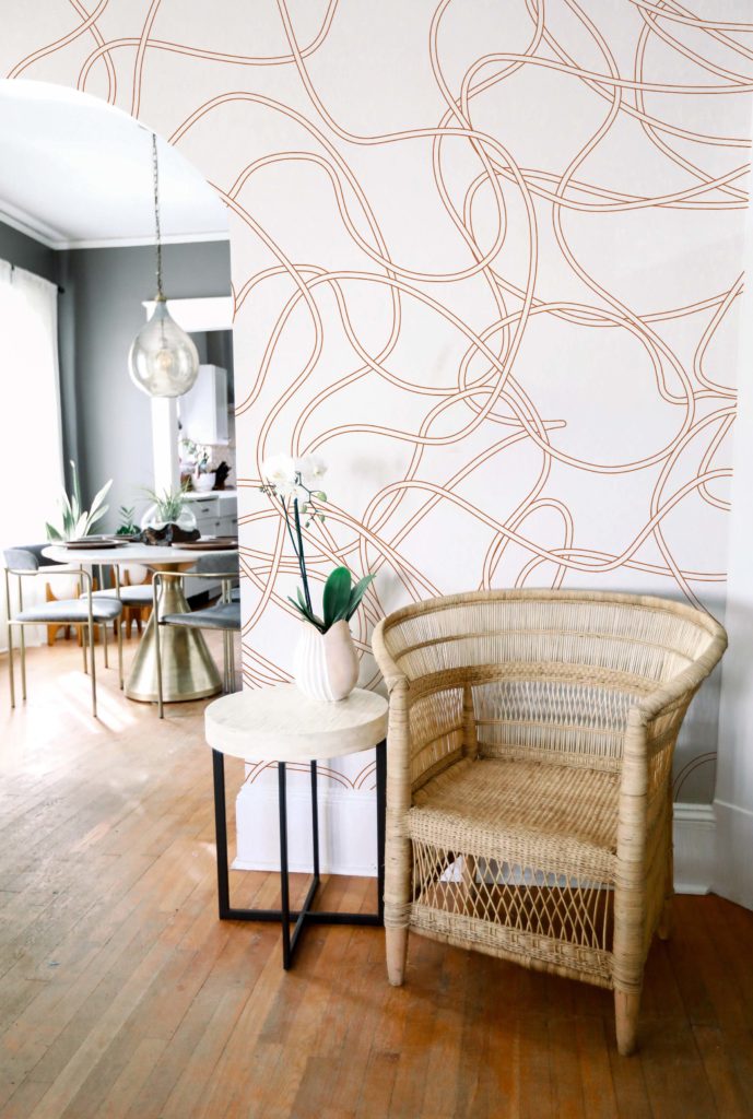 Un mur avec un papier peint maximaliste dans un environnement minimaliste, c’est du génie. Laissez-le parler pendant que le reste chuchote.