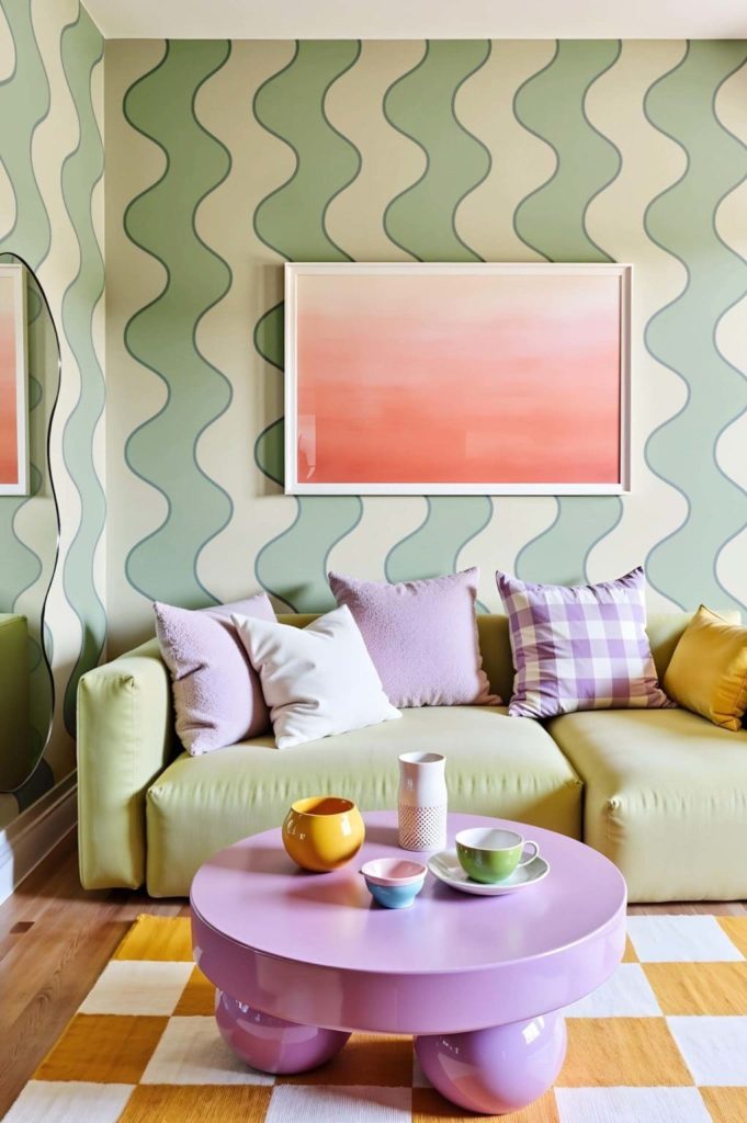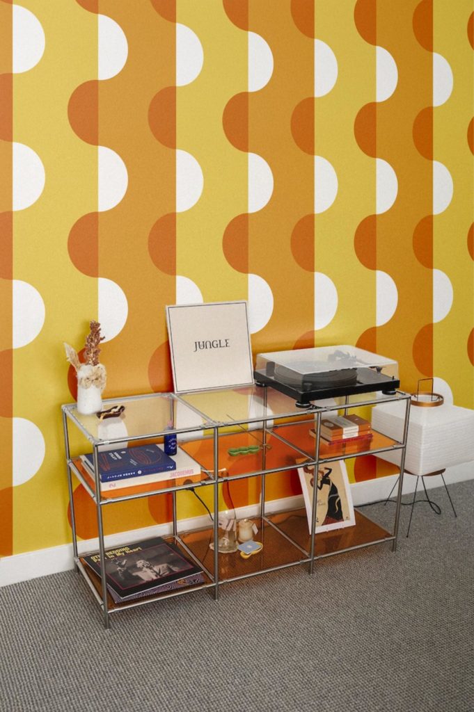 With wallpaper featuring rounded or geometric shapes and bold colors, a simple wall can become the playground of your decor, extending the joyful and poetic atmosphere you’ve just embraced.