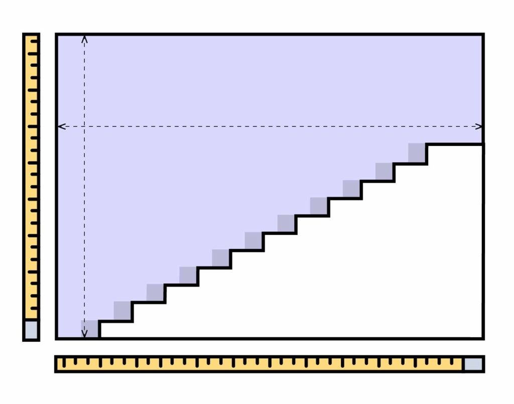 To measure a wall on a staircase, start from the lowest point, at the foot of the first step, to the ceiling to obtain the maximum height. Then measure the overall and horizontal width of the wall, as if it were a straight wall and not diagonally.