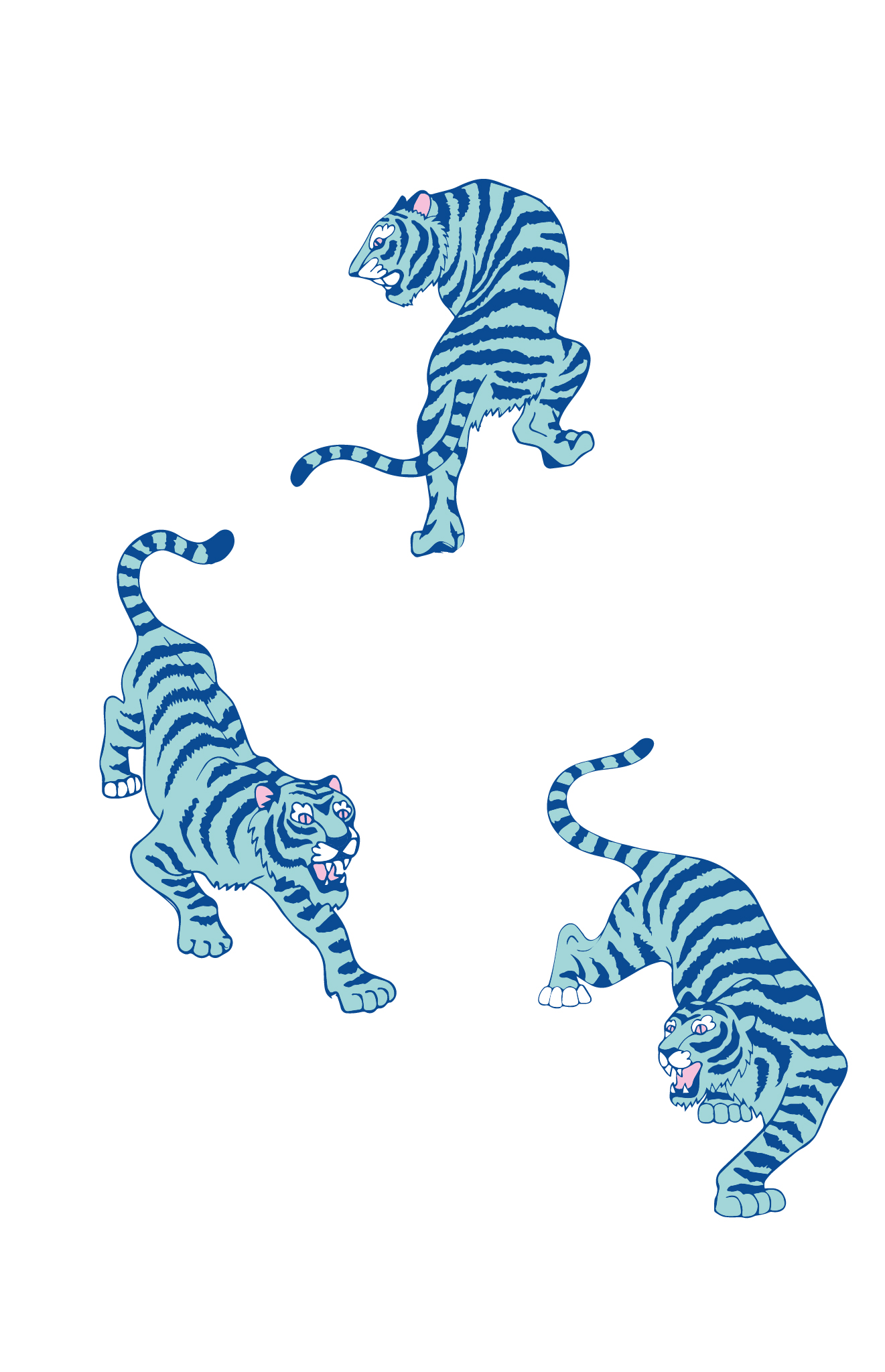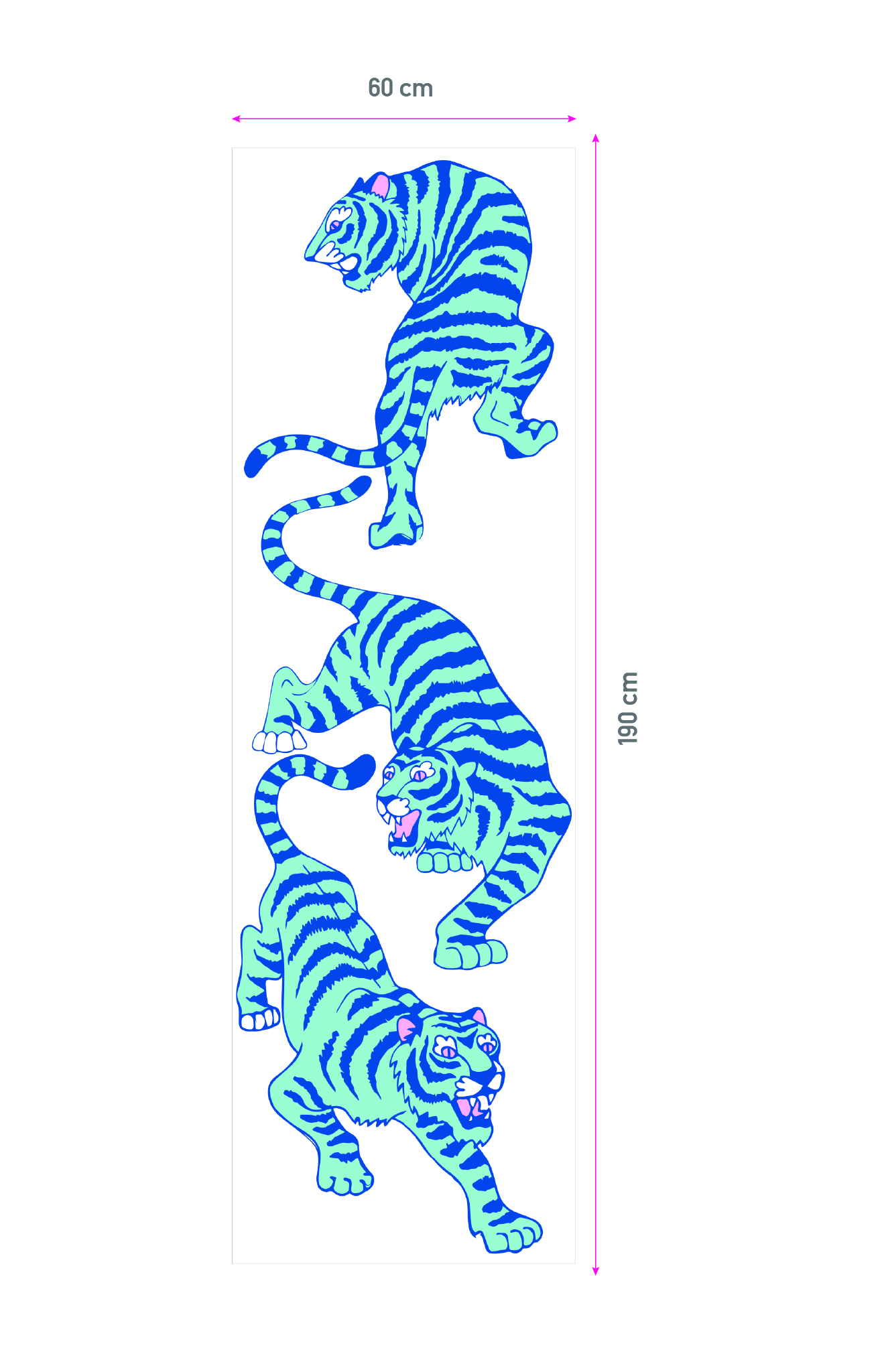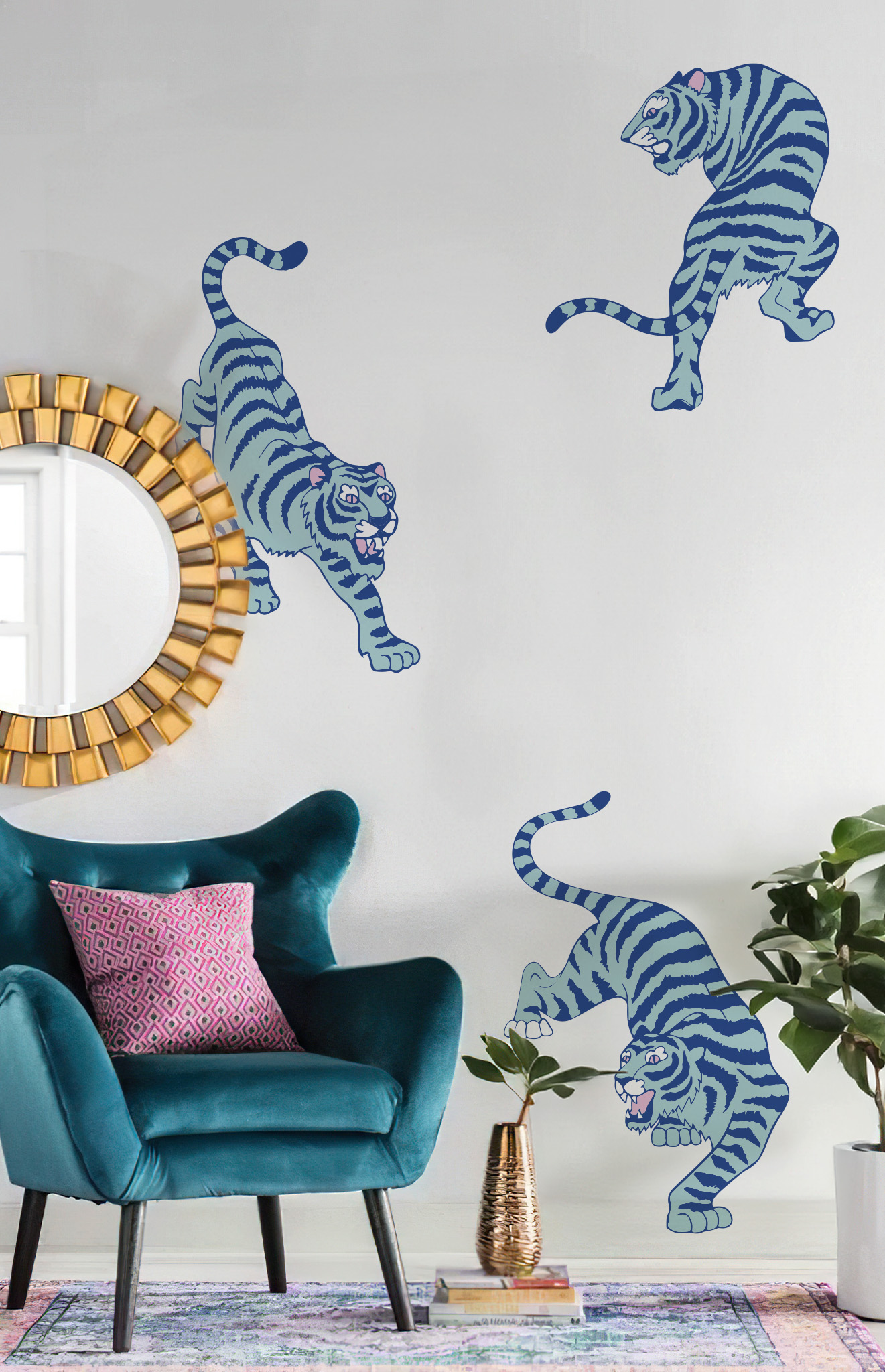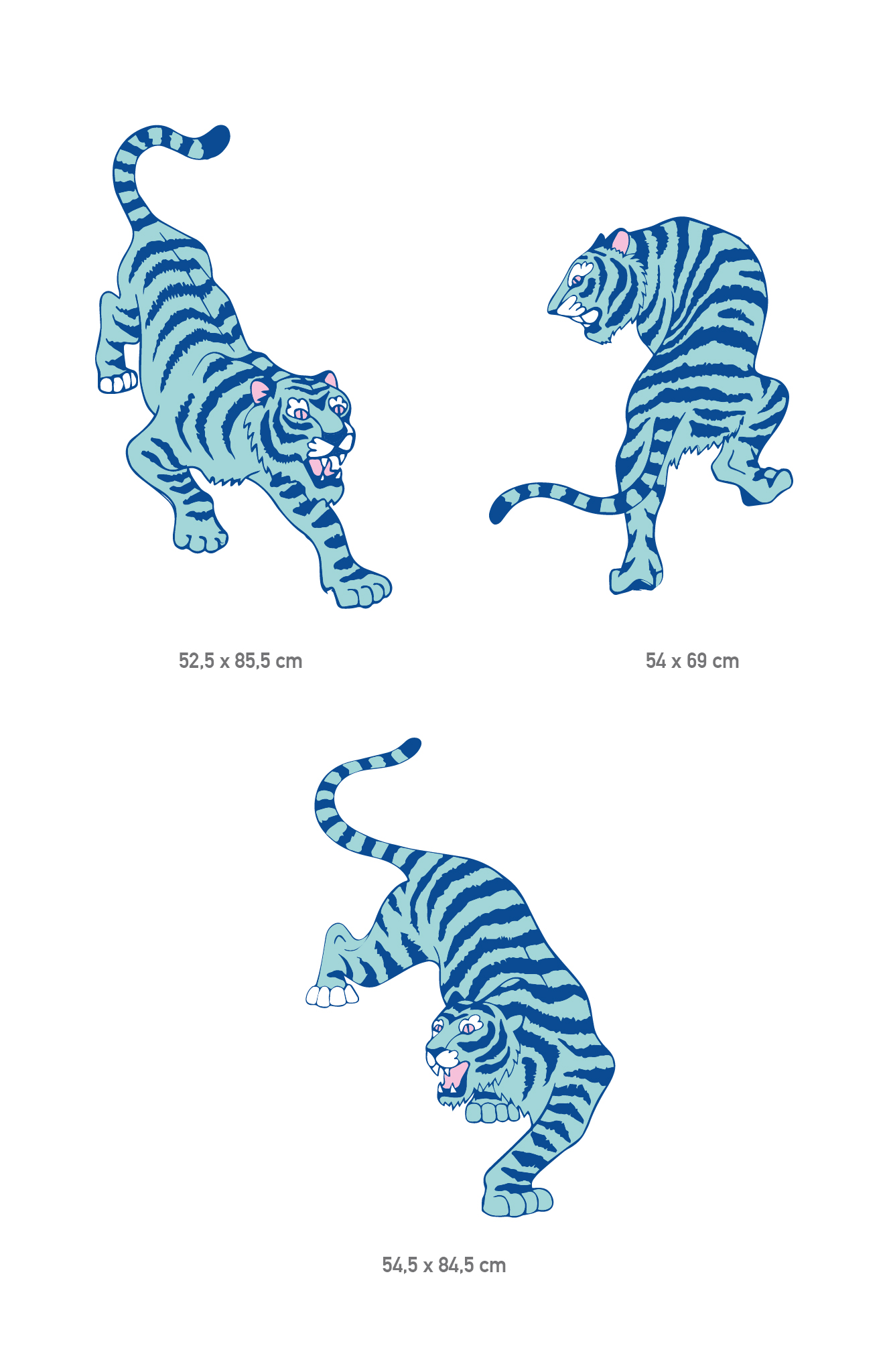 These wall stickers feature stylized tigers in bright hues of blue, creating a bold and modern vibe. Each tiger is depicted in a dynamic posture, capturing natural and energetic movements. ๐