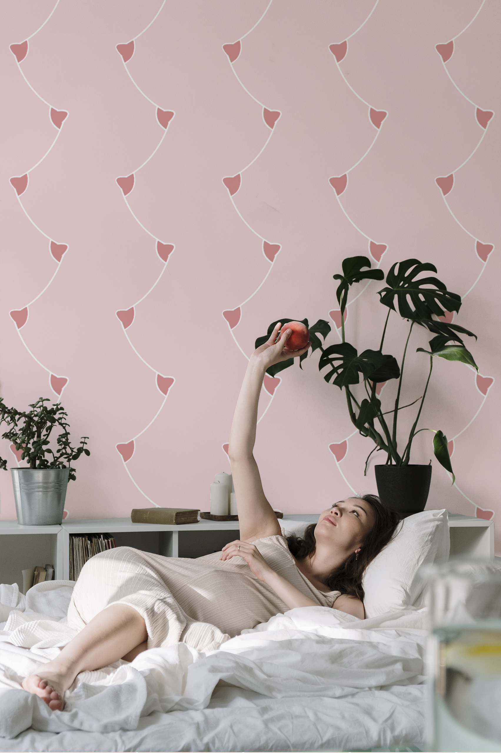 The “Nipples” wallpaper, with its modern and bold aesthetic, breathes a touch of humor and charm into your room. Set against a soft pink or white background, this playful design features a repeated sequence of small, abstract patterns that bring a playful and artistic dimension to the space.