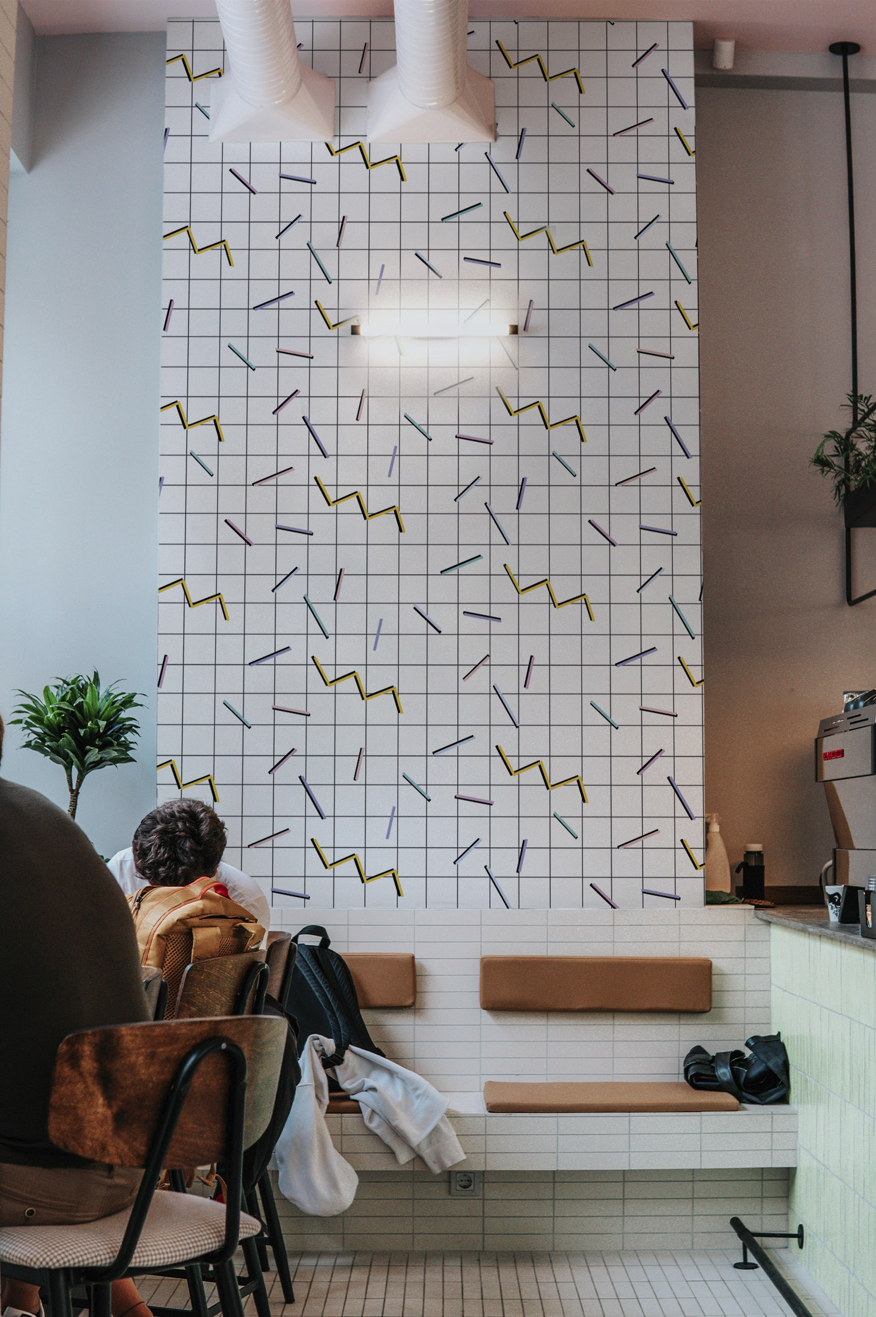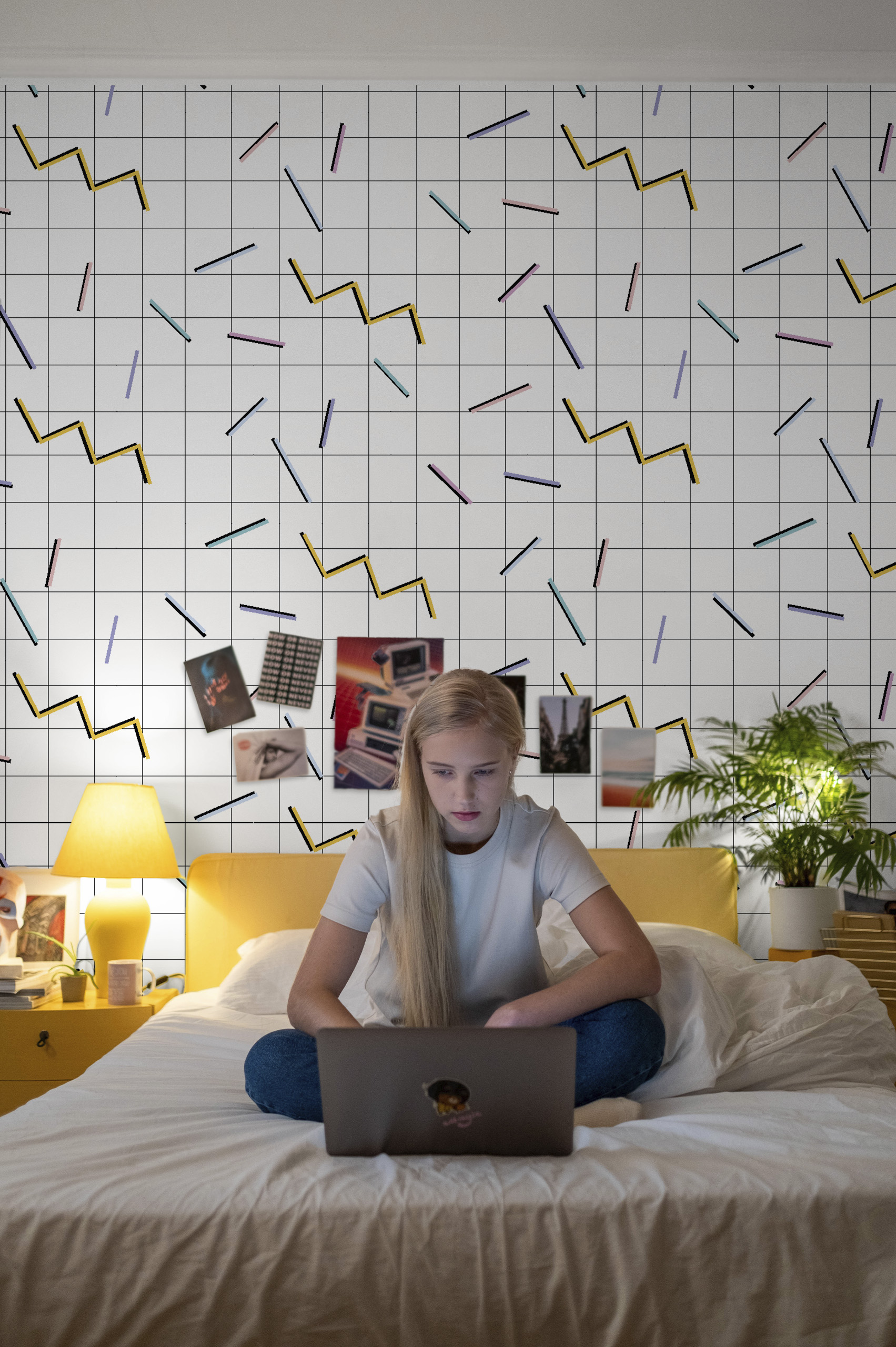 When it comes to interior design, Nยฐ7geometric vinylwallpaper is the star of the show! With its minimalist, contemporary motifs, our Memphis wallpaper on a white background comes in a range of colors to give your walls an artistic flair.