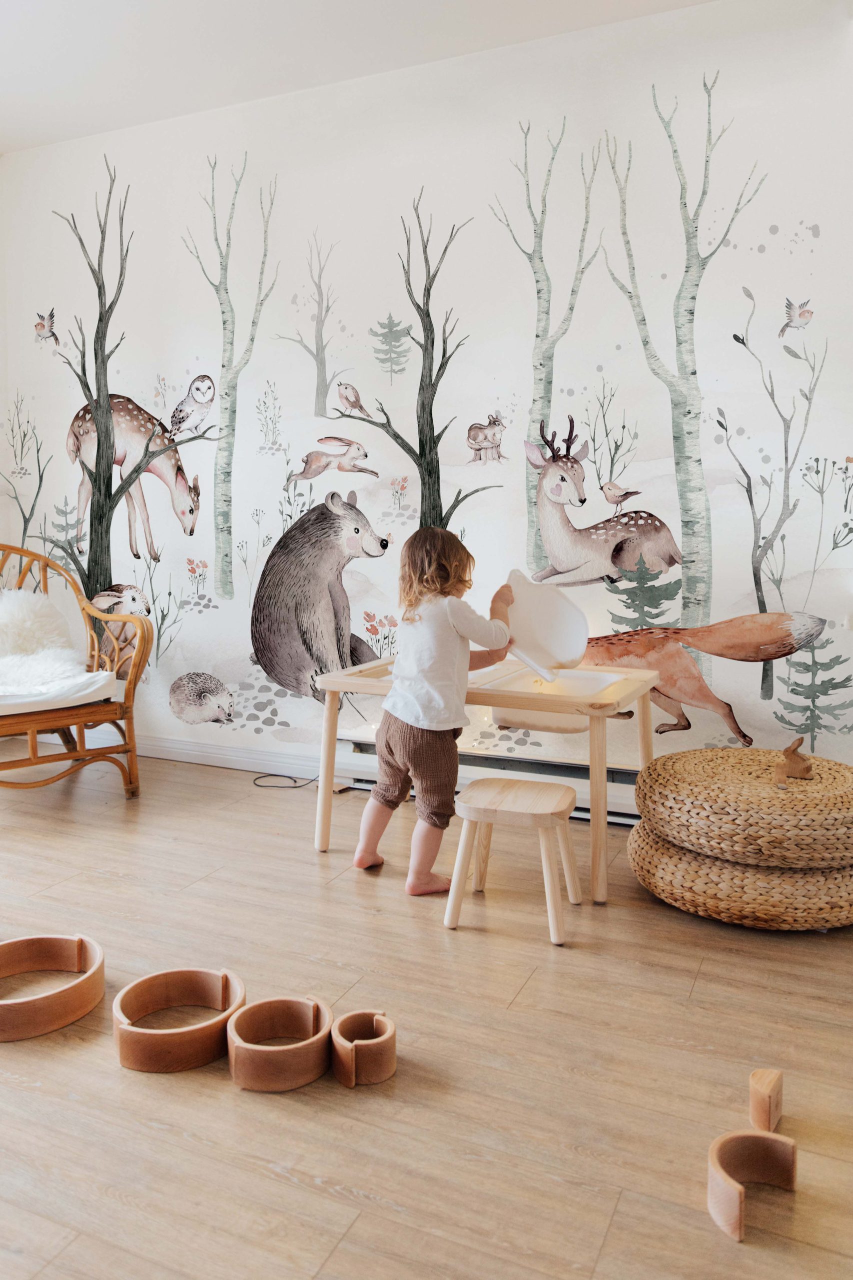Discover N°107, a panoramic forest wallpaper specially designed for little ones (don’t worry, it can also be used in older children’s homes)! Want to please your budding explorers? Then fall for this forest wallpaper, which smells like nature!