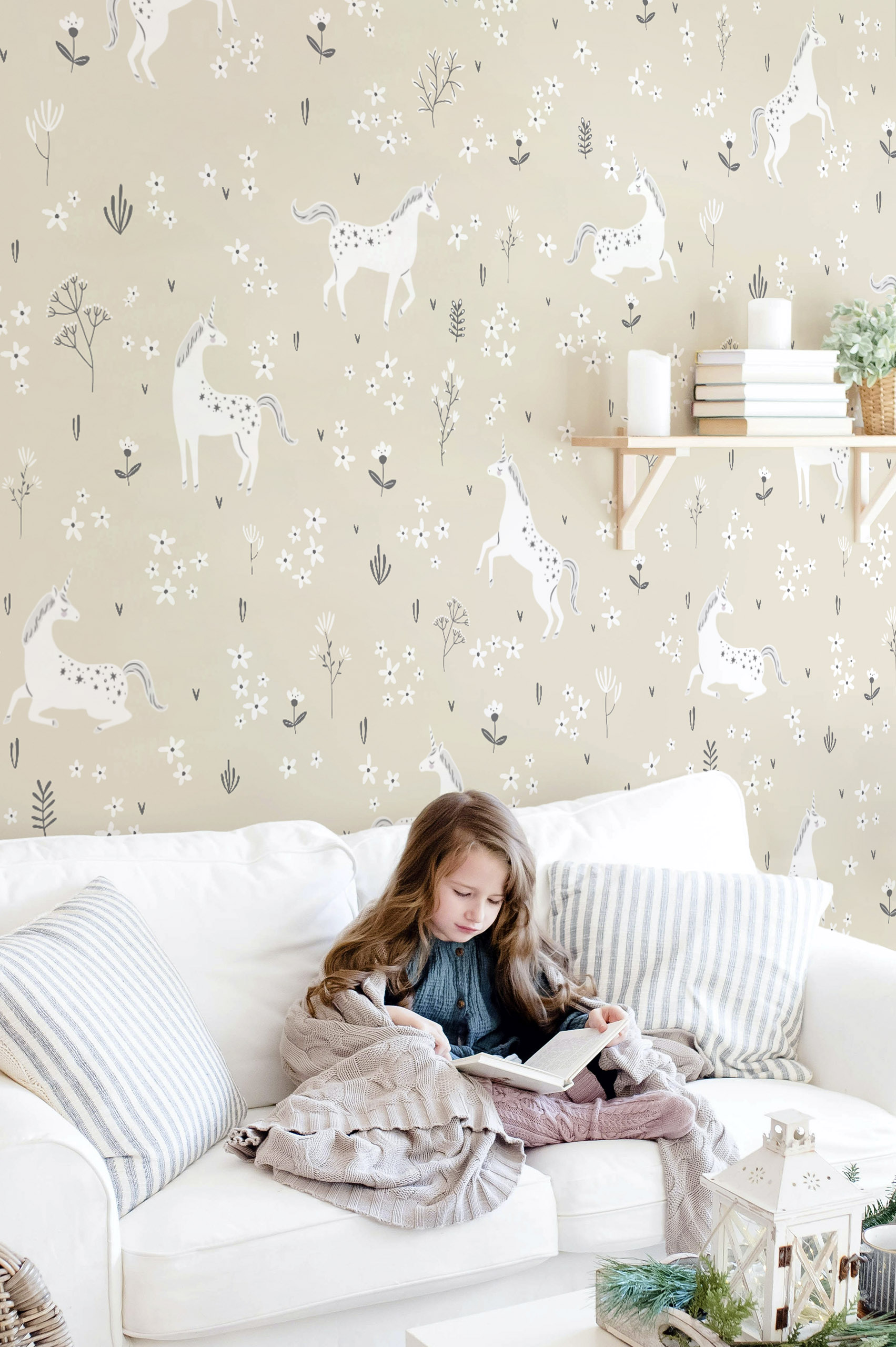 Embrace the magic and wonder with the ‘Unicorn’ wallpaper โ an enchanted getaway to your own home.