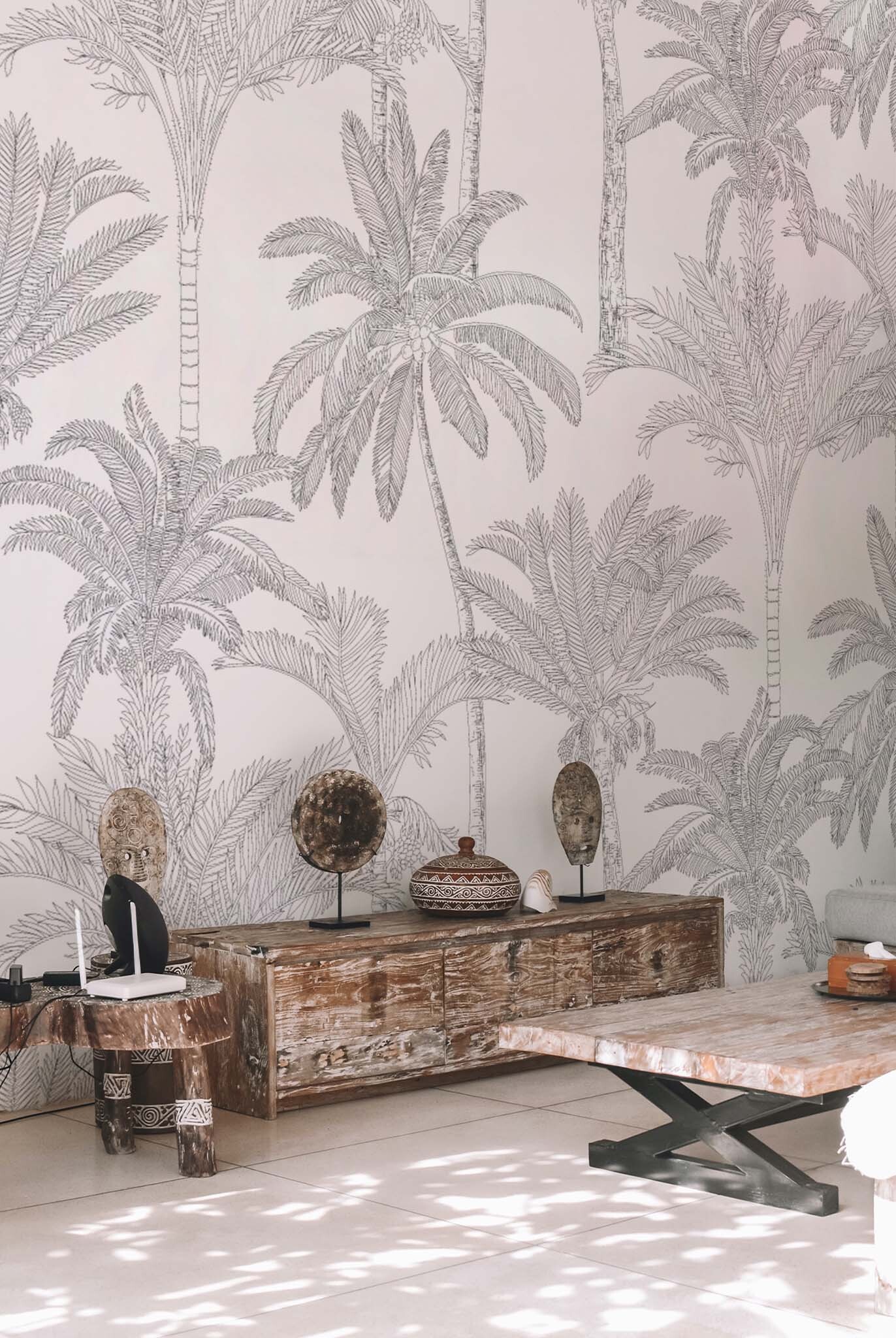With our black and white palm tree wallpaper, you can transform any living room into an oasis of freshness and vitality.