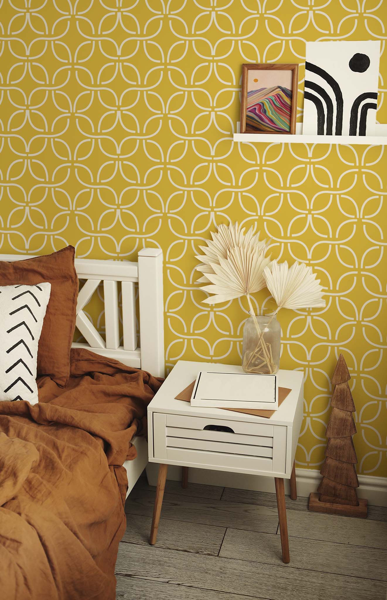 Dare to be original with our “Loop and Groove” wallpaper! This iconic pattern blends criss-cross shapes and flowing curves to evoke the playful spirit of mid-century modern. These harmonious patterns will add a festive and lively atmosphere to your walls, perfect for enhancing your living room, office or even bedroom. Available in several variations, from warm terracotta to a bold multi-coloured choice, you’ll find the perfect shade for your space.