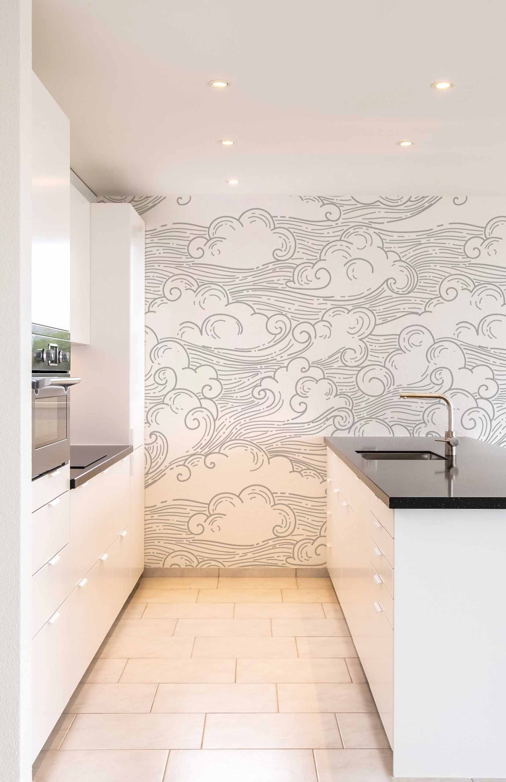 Decorating inspiration with Cloudy wallpaper: grey clouds