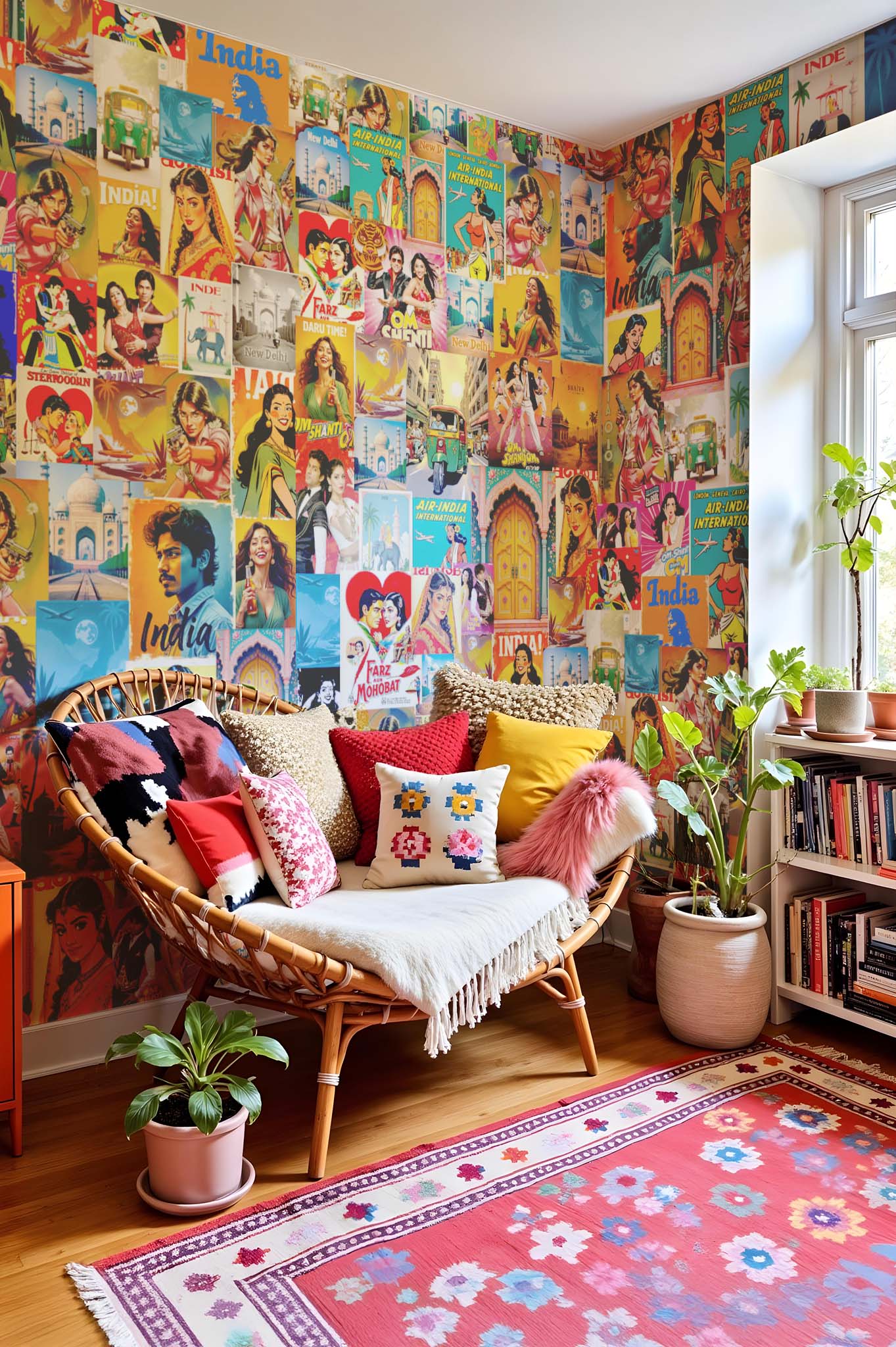 Transform your interior with our “Bollywood Vibes” wallpaper! Inspired by iconic Indian cinema posters, this explosive design offers a kaleidoscope of illustrations that celebrate India’s colorful and vibrant culture. The motifs are an explosion of charismatic characters, picturesque landscapes, and cultural landmarks, capturing the living soul of Bollywood. Whether for a coffee corner or a living room, this wallpaper brings a sparkling and cosmopolitan atmosphere, ideal for those who dare to be different. The multi-colored version allows you to add a touch of cheerfulness to any environment, creating a real artistic focal point!