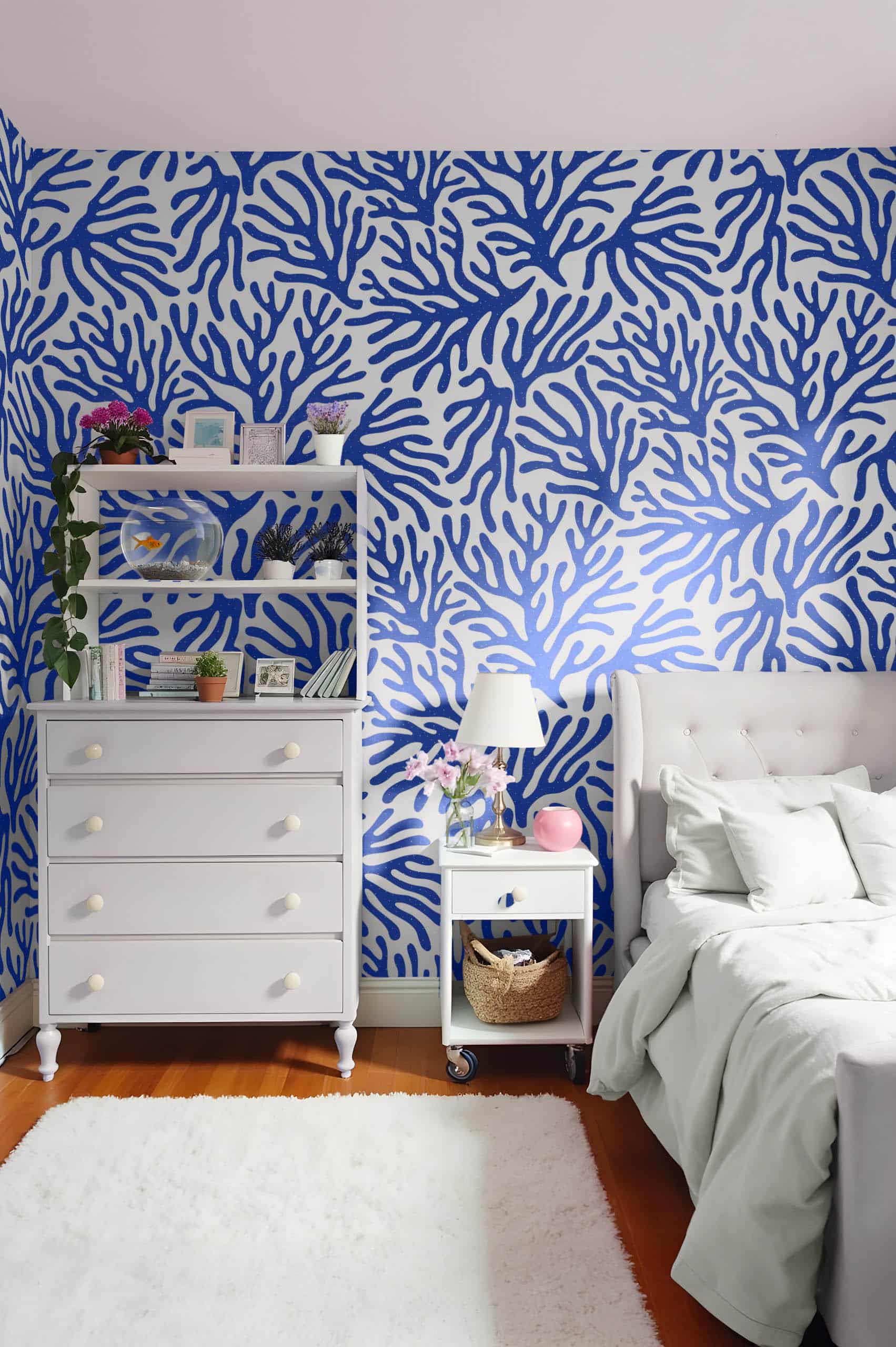 Immerse yourself in the marine world with our “Coral Boogie” wallpaper! This playful pattern, inspired by the organic shapes of corals, evokes a mesmerizing movement that dances on your walls, creating a vibrant and calming atmosphere. The sinuous and tangled lines bring a dynamic touch to your decoration, making each room a real bubble of escape. Ideal for the bathroom, this design adapts to various styles, bringing a note of modernity and originality. Available in four color variations, including green, blue, red, and yellow, you can choose the one that best matches your space and personality!