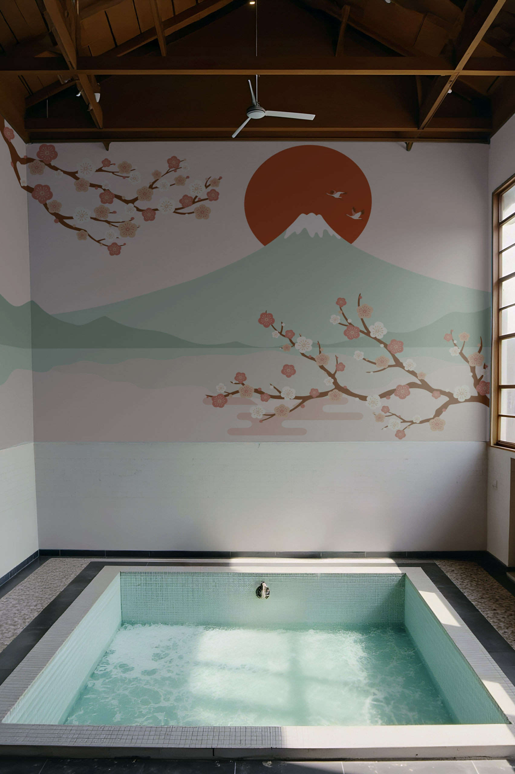 Forget the routine with our Japanese Getaway wallpaper! This captivating pattern plays with the graceful simplicity of cherry tree branches stretching beneath a majestic Mount Fuji, all wrapped in a peaceful ambience. It’s as if your wall is transformed into a modern artist’s canvas, where each flower seems to dance under a light breath. This design is perfect for adding a touch of serenity to your bedroom or living room, opening you up to a world of tranquility. Available in several color variations, you can choose the one that best suits your style: turquoise blue or dark blue, any option will immerse you in elegance!