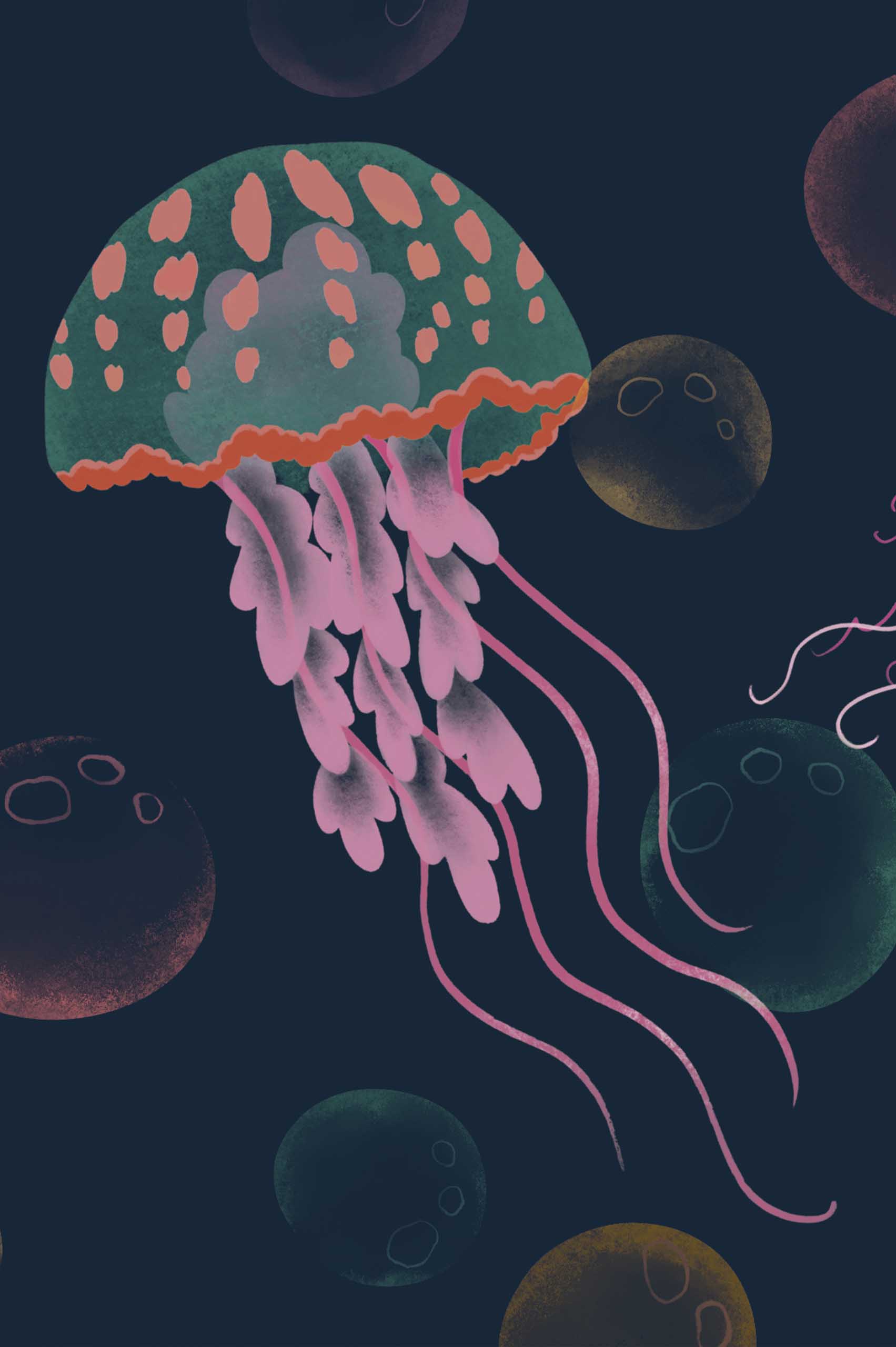 Immerse yourself in the bewitching world of “Melody of Medusa”! This captivating motif depicts jellyfish in a stylized ocean. The rounded, flowing shapes create an almost hypnotic ambience, ideal for a modern space. Perfect for bringing a marine touch to your living room, bedroom or office, and to capsize the hearts of sea enthusiasts. This design is available in two color variations, offering options to customize your space to suit your mood: blue or multicolored. With this wallpaper, water invites itself into your home without any fuss!