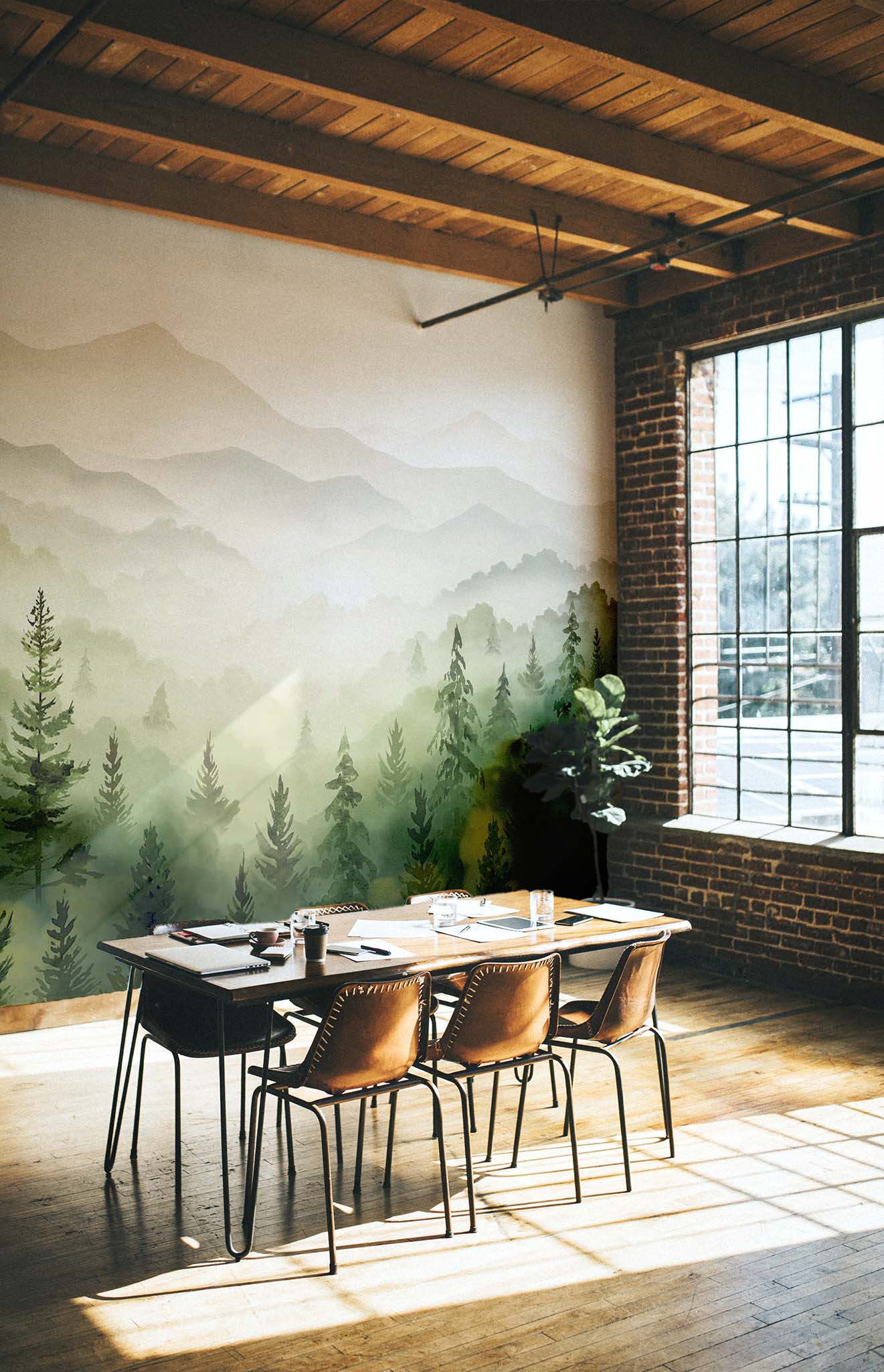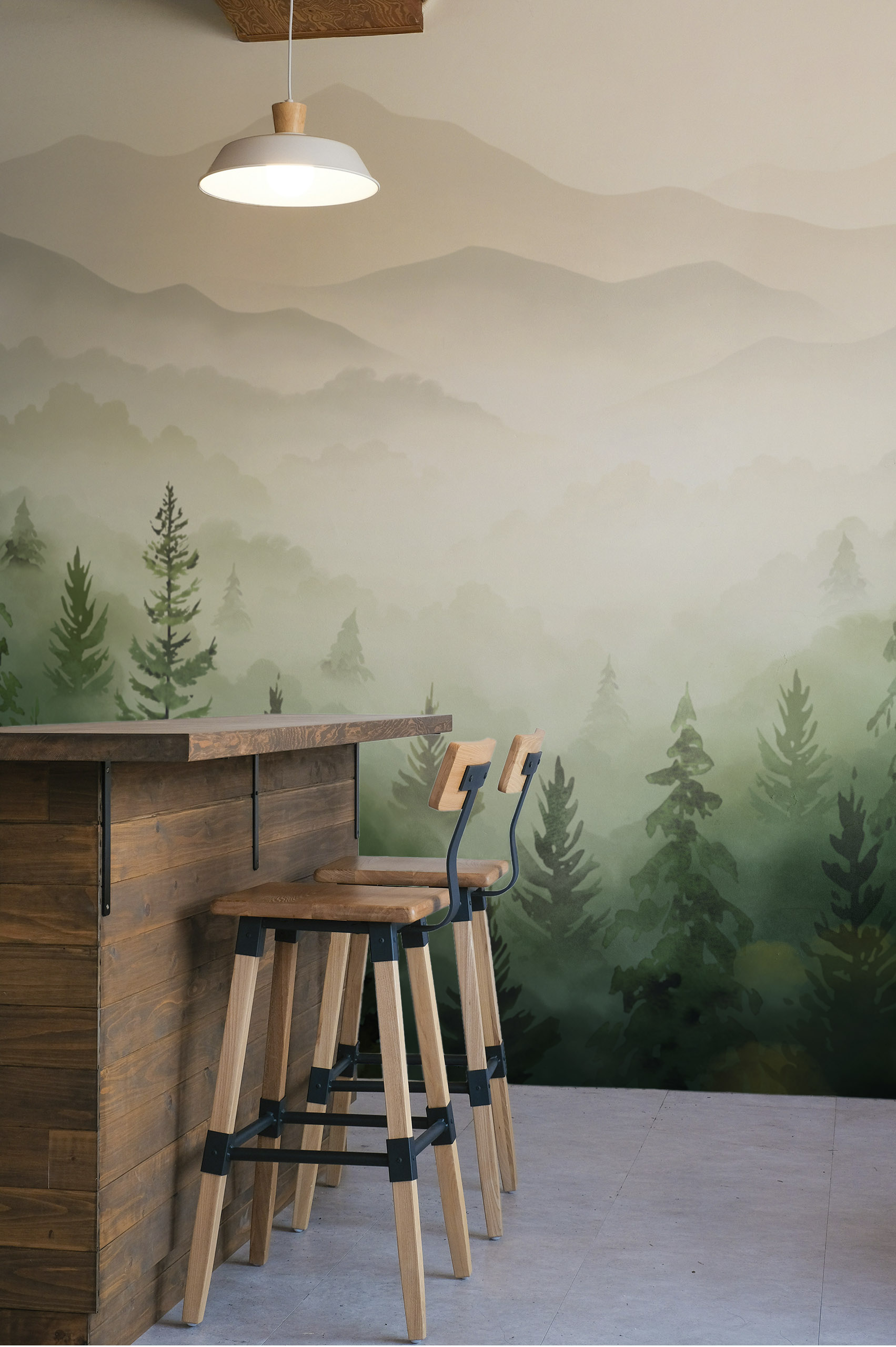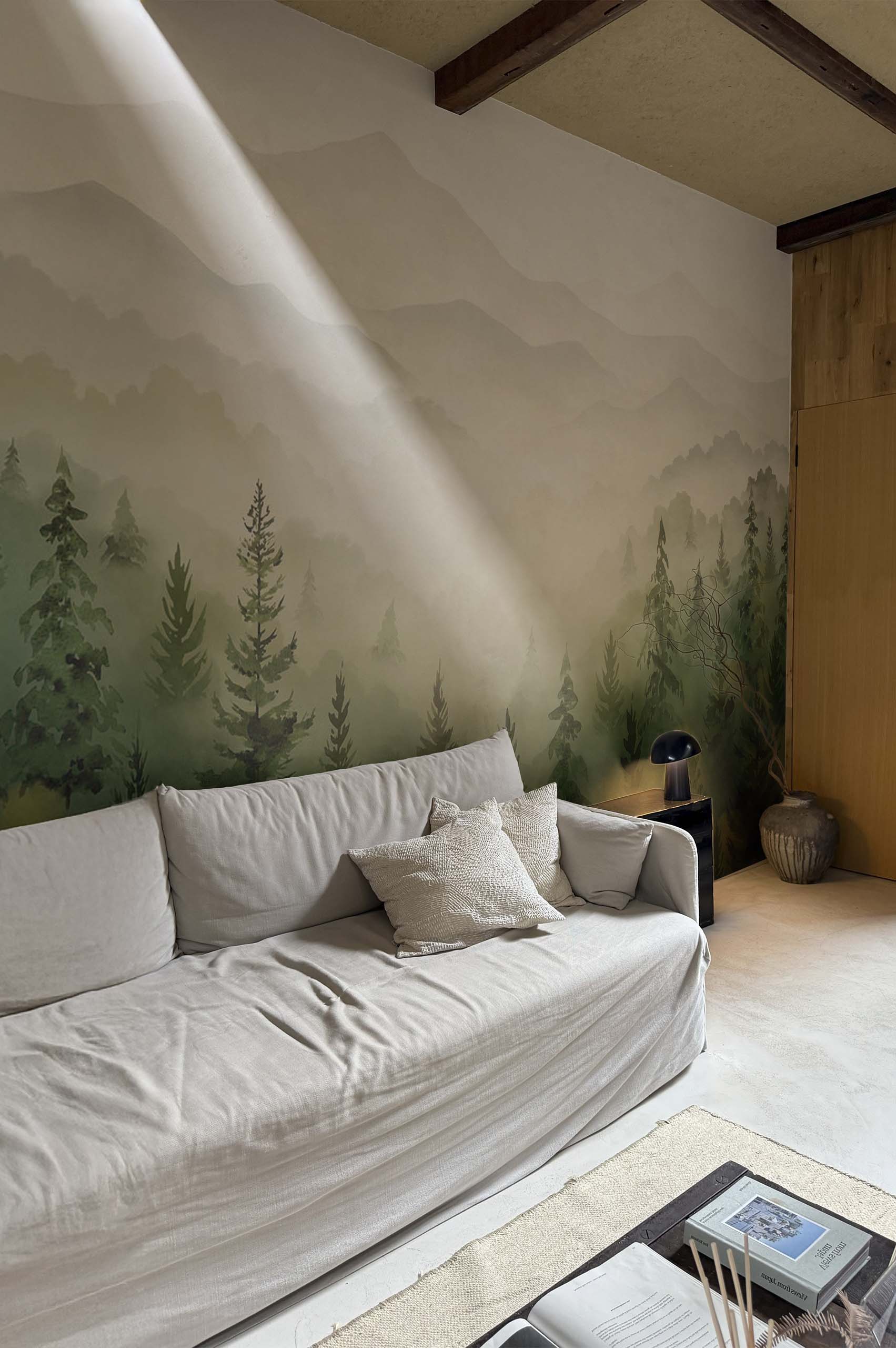 Escape reality with our “Pine Mist” wallpaper! This pattern immerses you in the magic of forest landscapes, with conifers that seem to dance beneath a gentle mist. The shades of this design evoke tranquillity, creating a warm and soothing space in your interior. Whether in your living room or bedroom, this wallpaper becomes the ideal focal point for your décor. With colours ranging from green to blue and even a bold orange, it adapts to all your desires and styles. Perfect for creating a cosy atmosphere while remaining modern!