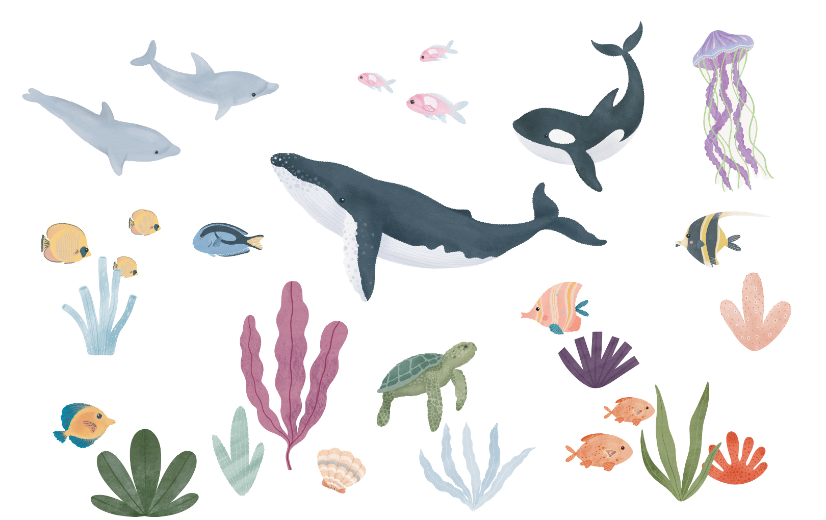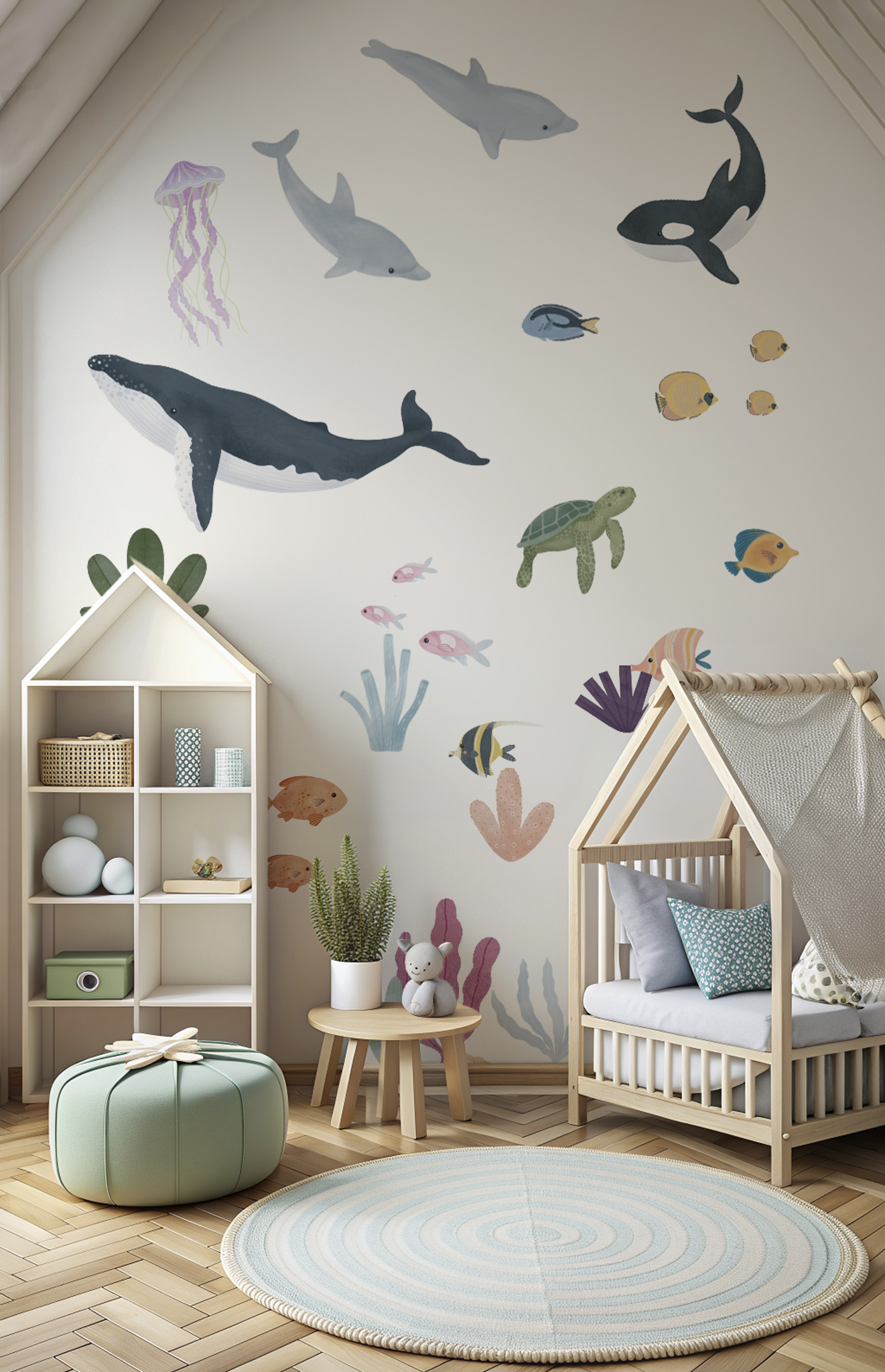 Immerse yourself in a fascinating world with our “Underwater Animals” wall stickers, specially designed to enchant your child’s room.