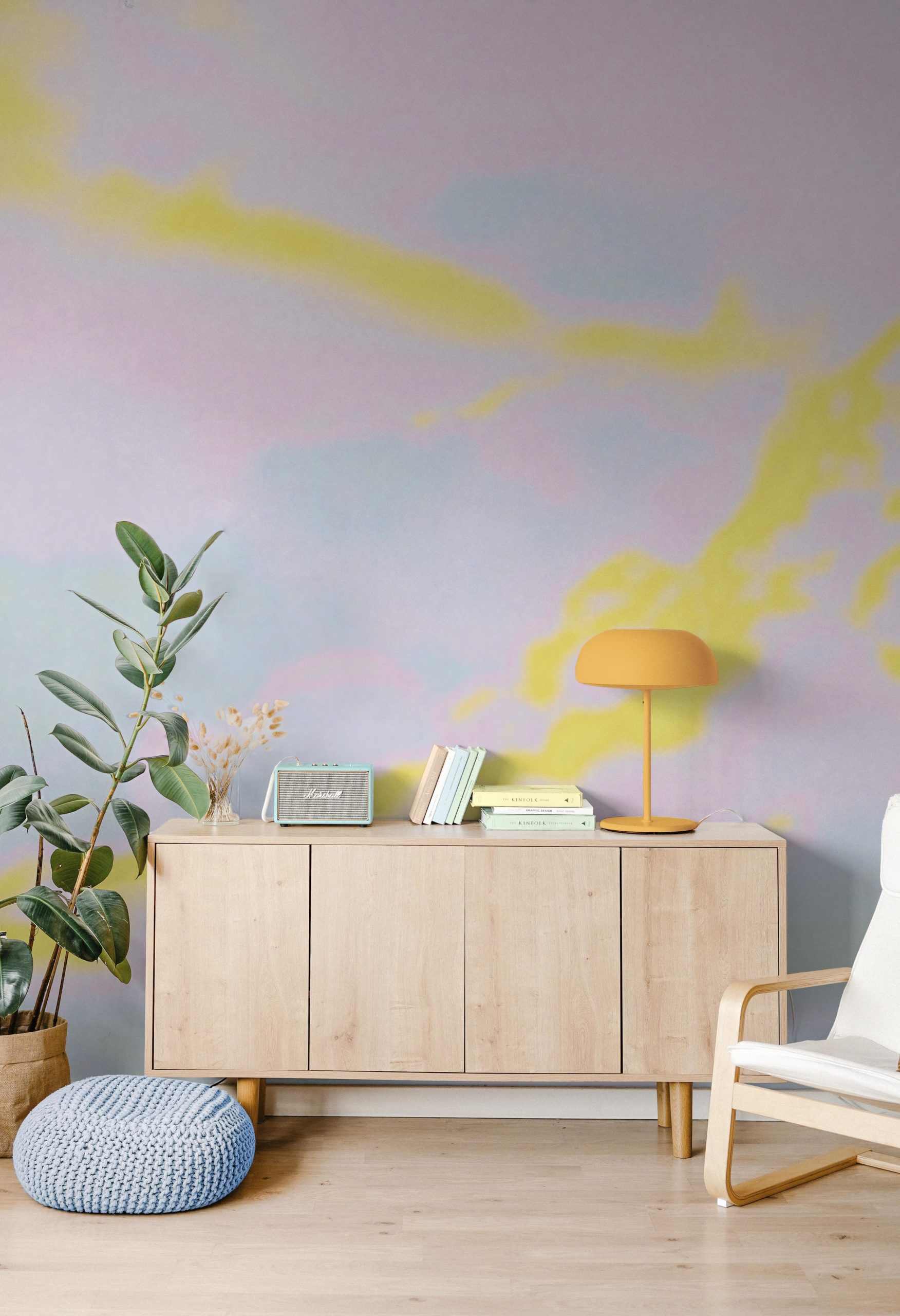 Elevate your dรฉcor with the Colorful Sky Wallpaper, a piece of wall art that embodies the tranquility of a morning sky. Inspired by the balmy early hours of the day, this design blends harmonious shades of soft yellow, light purple and pale blue, creating a relaxing ambience. Ideal for infusing your rooms with dreamy tranquility and modern elegance, this customizable wallpaper invites you to relax every day.