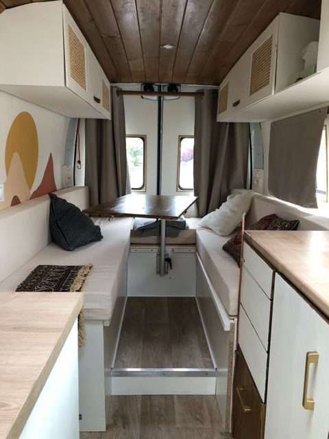 Cojines blanditos, plaids suaves y cortinas opacas, ¡simplemente! Si te falta imaginación, ¡inspírate en el estilo escandinavo muy de moda ahora mismo y referencia del ambiente acogedor! Piensa también en añadir pequeños toques de color mediante tus objetos decorativos o tu vajilla para realzar la decoración de tu furgoneta. Y para que tu vehículo sea aún más único, añade un toque personal: fotos familiares, cuadros con tus frases favoritas, tus plantas preferidas, etc. Para mayor estabilidad, fíjalas con ganchos, pegamento o calcomanías removibles. ¡Te irán de maravilla!
