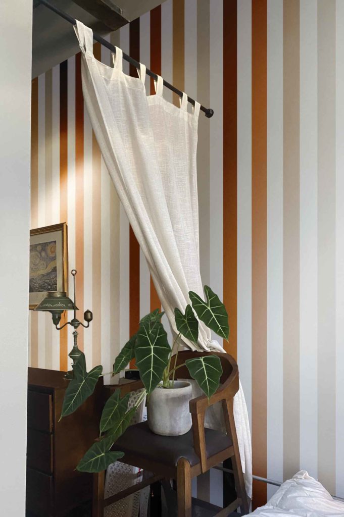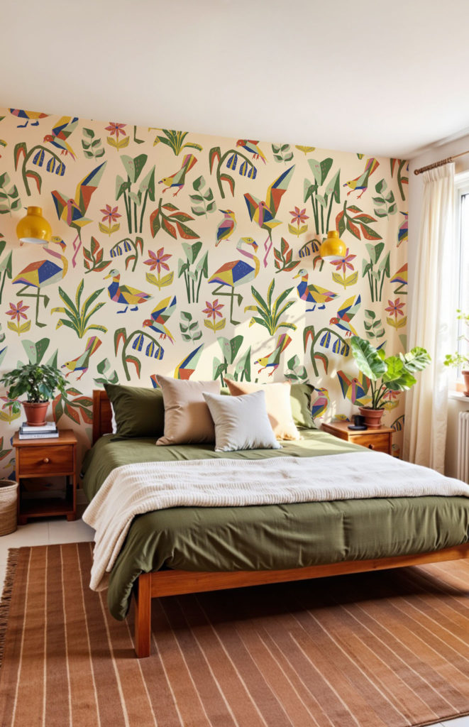 También hay una forma menos directa pero igual de efectiva: desviar la atención. Si colocas un papel pintado Wellpapers con un patrón potente, como un diseño geométrico o un estampado tropical, el foco se irá inmediatamente hacia el conjunto de la pared, y no hacia los elementos que querías esconder. A veces, lo mejor para disimular es simplemente dejar de destacar.