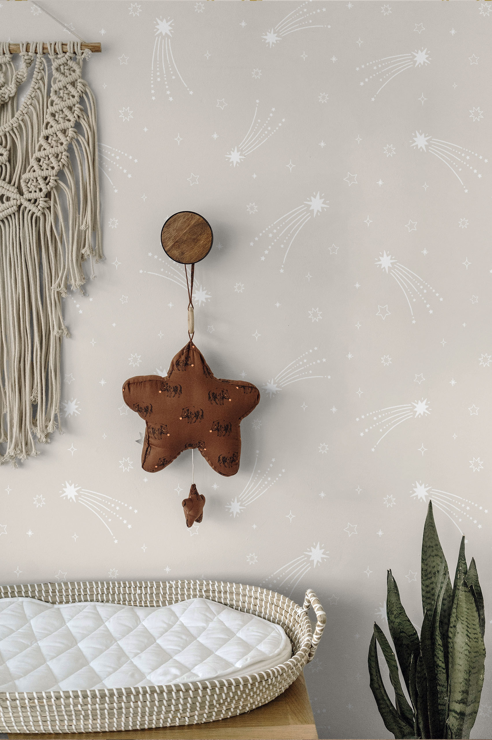 Emociones y estado de ánimo: Los colores del papel pintado pueden influir en el estado de ánimo y las emociones. El papel pintado con colores suaves que favorecen un ambiente relajante puede ayudar a reducir el estrés y fomentar el bienestar de tu hijo/a / bebé.