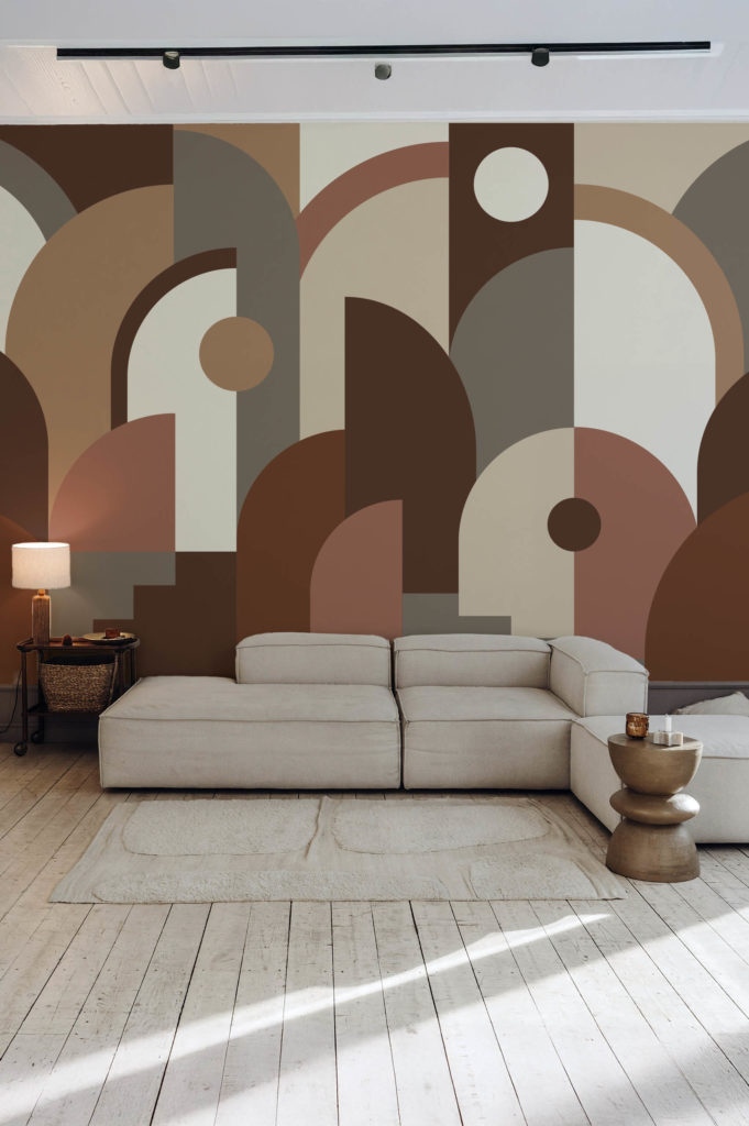 Si te gusta el estilo moderno, los murales abstractos con formas orgánicas o pinceladas artísticas están muy presentes este año. Son ideales para espacios creativos o estancias con estilo galería.