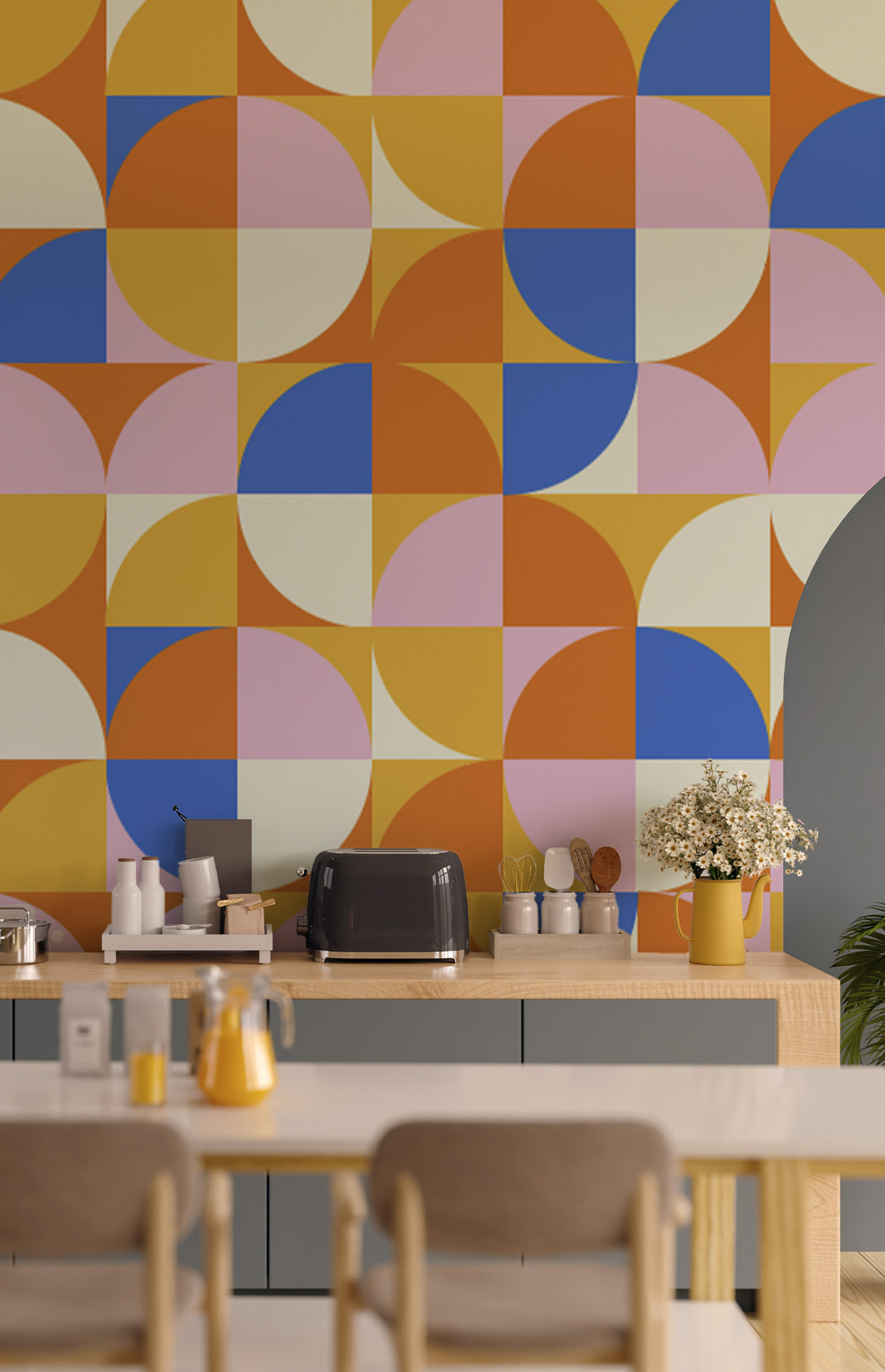 ¡Atrévete a ser original con nuestro papel pintado «Mid Century Bauhaus»! Este cautivador diseño presenta formas geométricas divertidas que se entrelazan para crear composiciones fluidas y rítmicas. Inspirado en la estética moderna de mediados de siglo, este estampado evoca un ambiente a la vez lúdico y sofisticado. Ya sea en su sala de estar, dormitorio u oficina, este papel pintado energizará su interior con su frescura y espíritu contemporáneo. Disponible en variaciones multicolores y rosas, ¡tendrás muchas opciones cuando se trata de iluminar tus paredes!