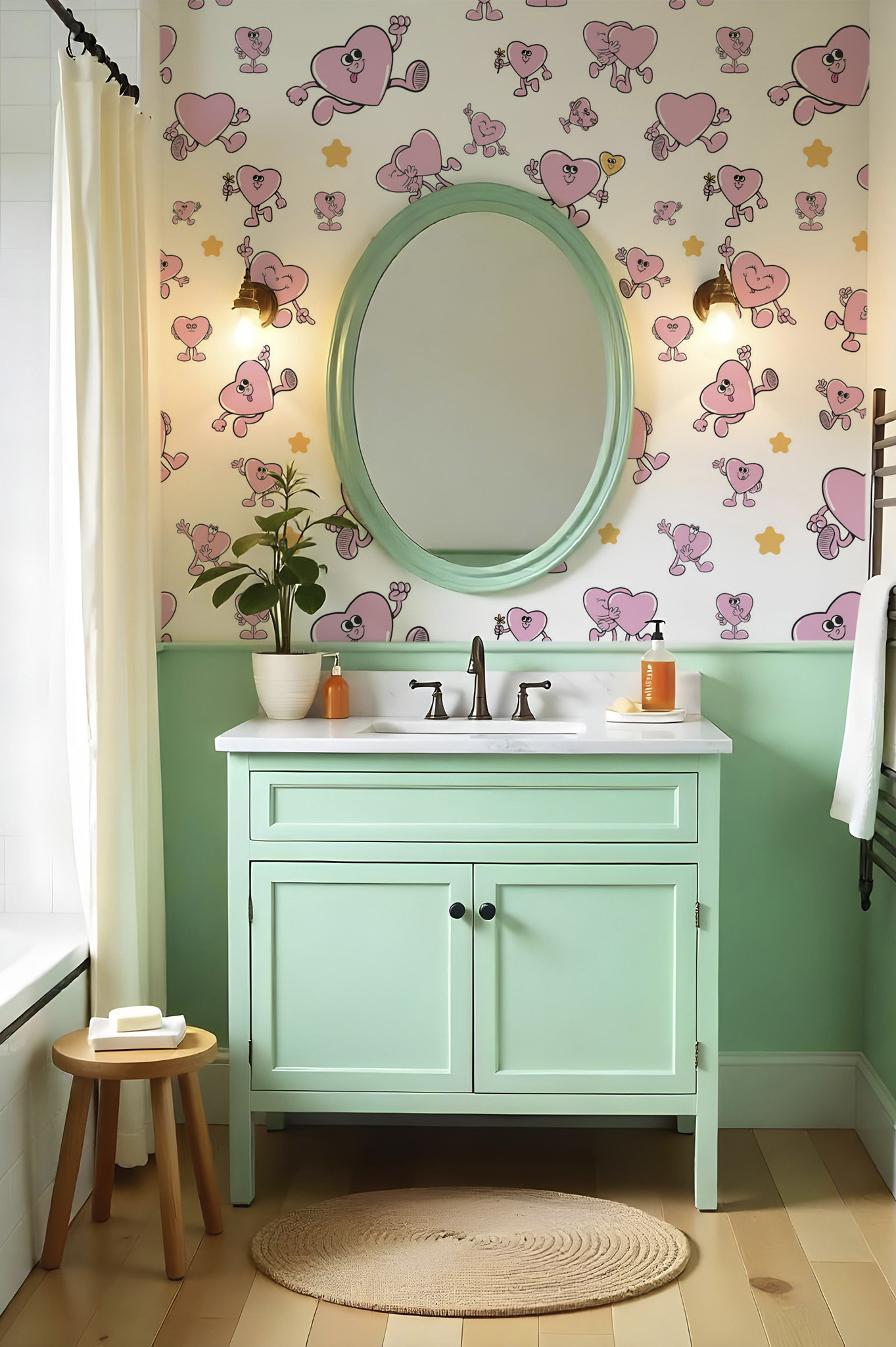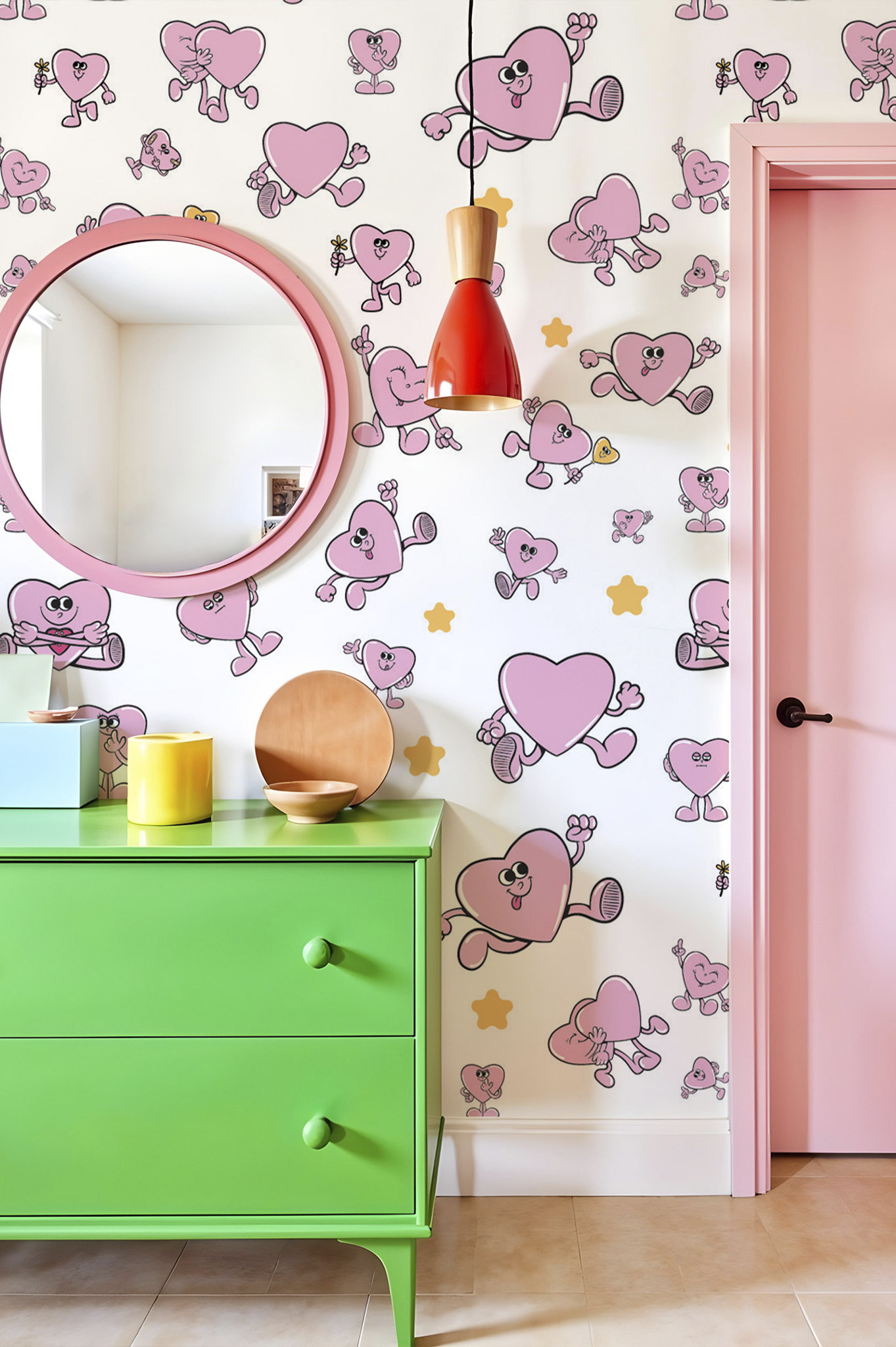« Cœurs en Folie » est un motif ludique qui fait battre le cœur à chaque regard ! Avec ses personnages charmants et espiègles, ce papier peint apporte une touche de joie et de légèreté qui égayera n’importe quel mur. Parfait pour une chambre d’enfant ou un coin ludique, il s’inscrit idéalement dans les tendances actuelles de décoration créative.