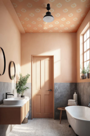 Les couleurs claires et les motifs discrets, comme les rayures verticales ou les effets géométriques, sont idéaux pour donner une impression d’espace. À l’inverse, un plafond foncé ou texturé peut offrir un effet chaleureux et cocooning, parfait pour certaines ambiances.