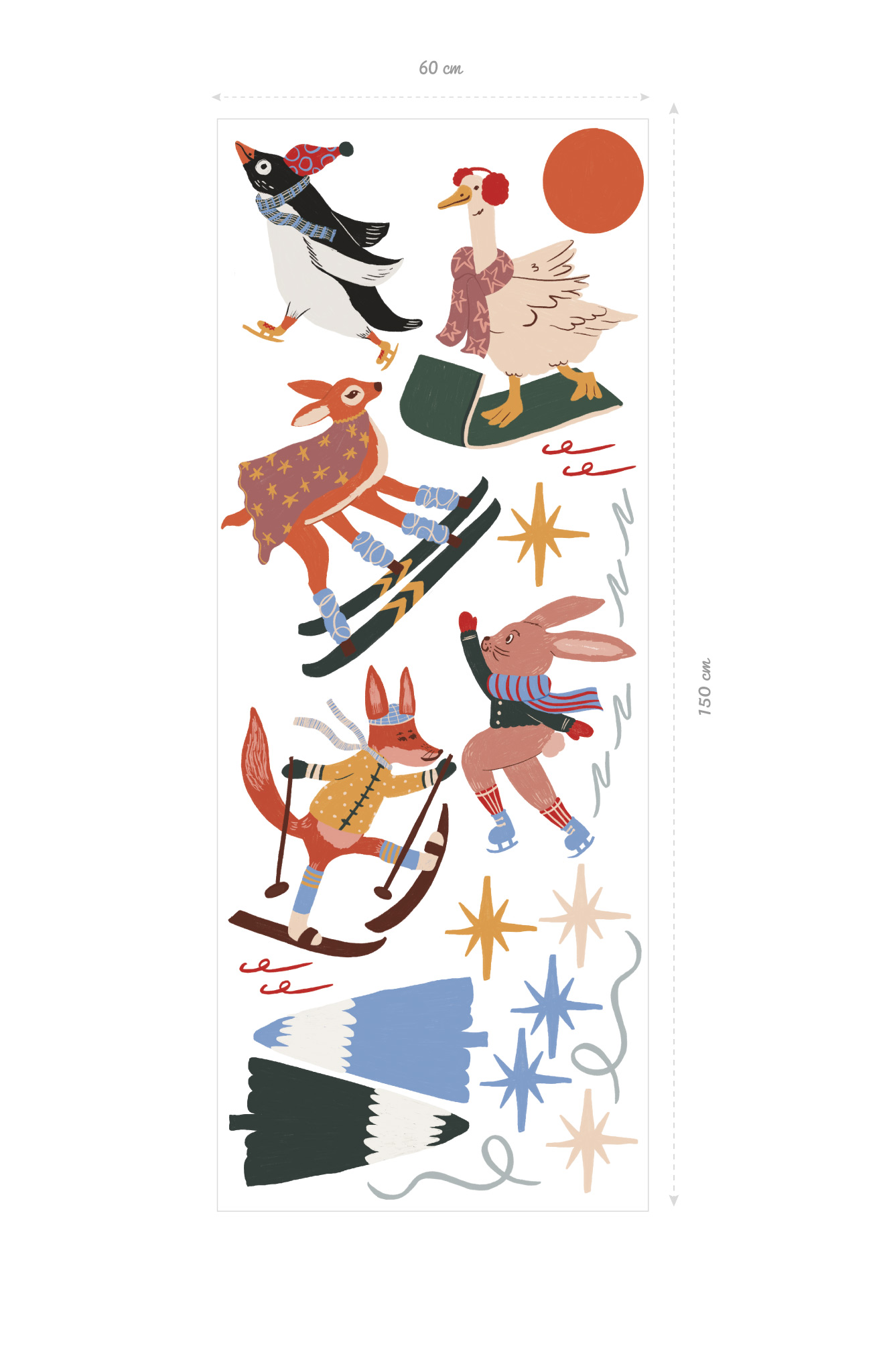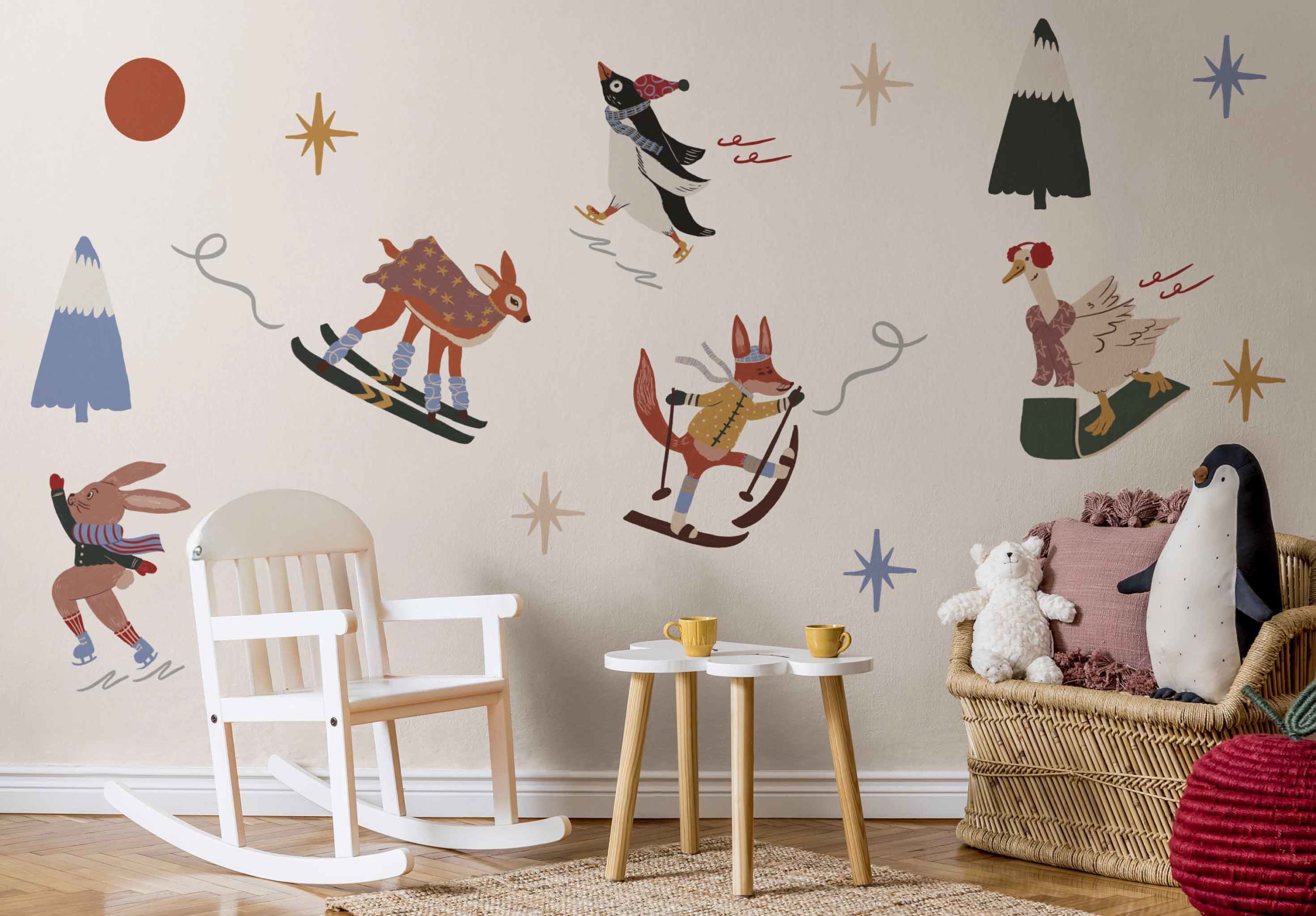 Apportez une touche hivernale douce et créative à votre intérieur avec nos stickers muraux Wellpapers. Illustrés avec soin, ces animaux rigolos – renard, lapin, pingouin, faon – s’accompagnent d’étoiles, montagnes et lignes décoratives pour composer une ambiance chaleureuse. Faciles à appliquer et repositionnables, ils sont parfaits pour personnaliser une chambre d’enfant, un espace de jeu ou tout autre mur. Une décoration originale et tendance pour célébrer l’hiver en couleurs.