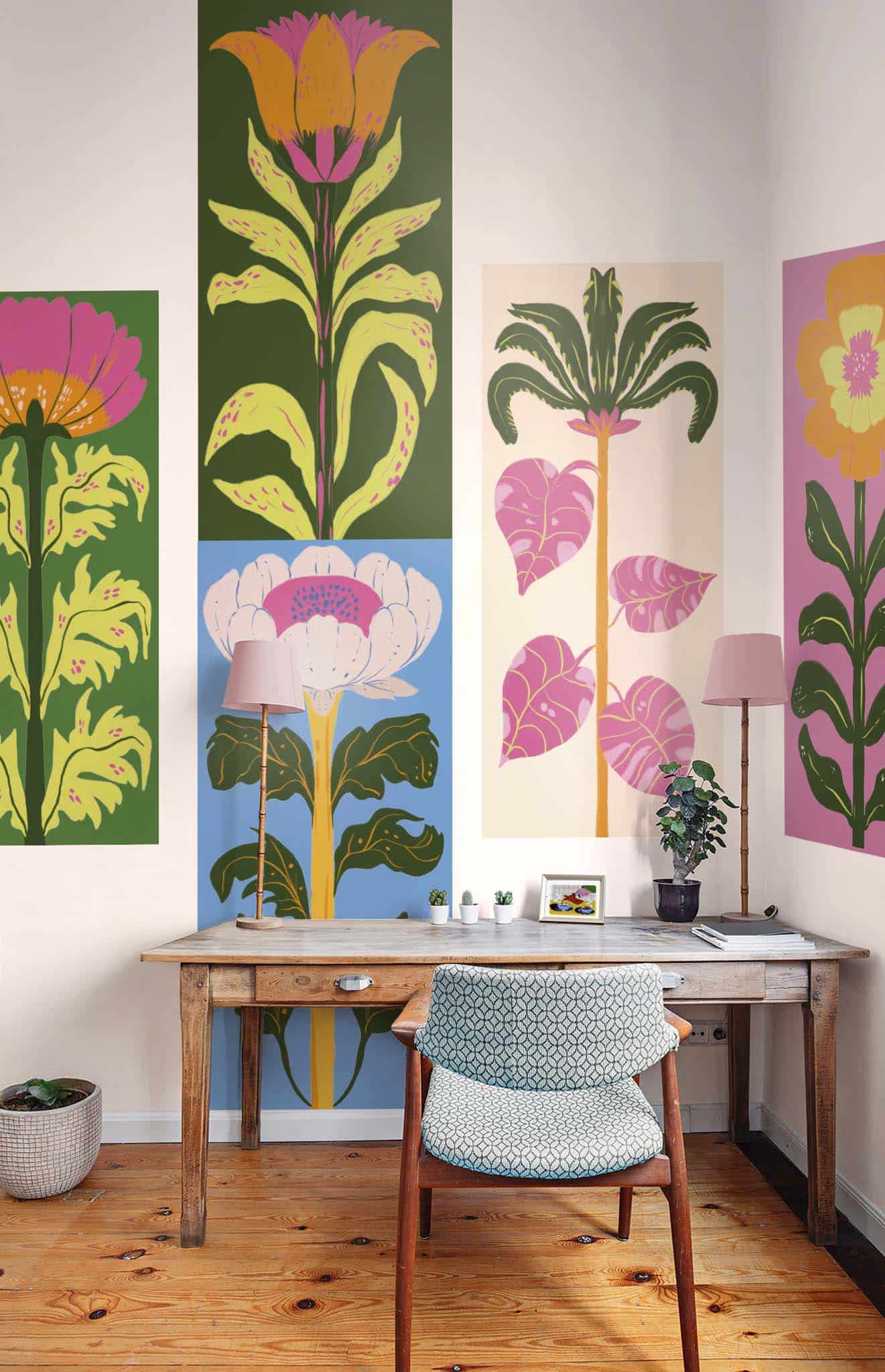 Imaginés et imprimés en Europe, les stickers Wellpapers associent design illustré, qualité premium et simplicité d’installation, pour une décoration murale florale moderne, colorée et impactante.