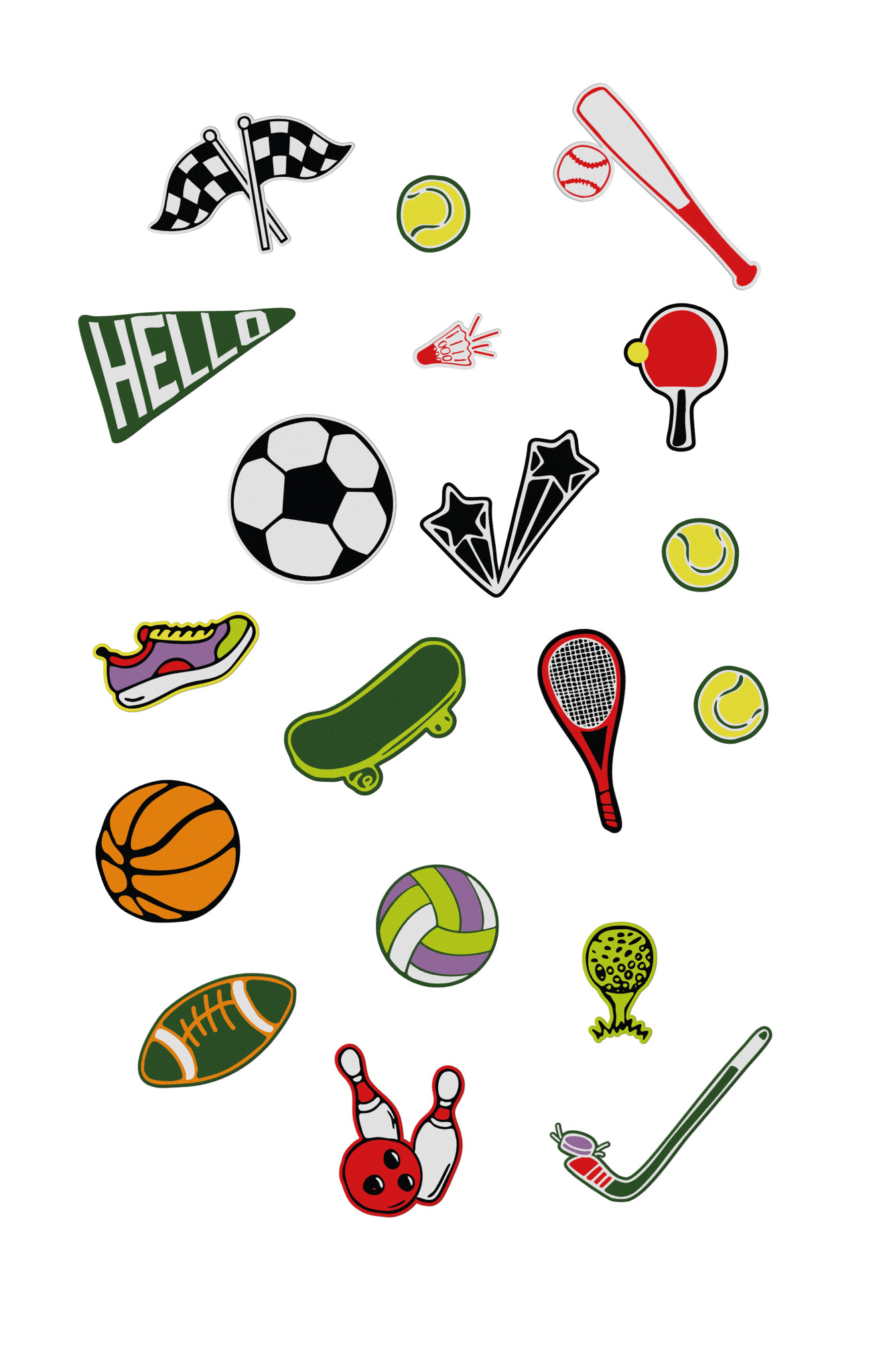 Ballons, raquettes, baskets, skate et clins d’œil graphiques : ce pack, c’est un joyeux mix de disciplines, de fun et de couleurs.