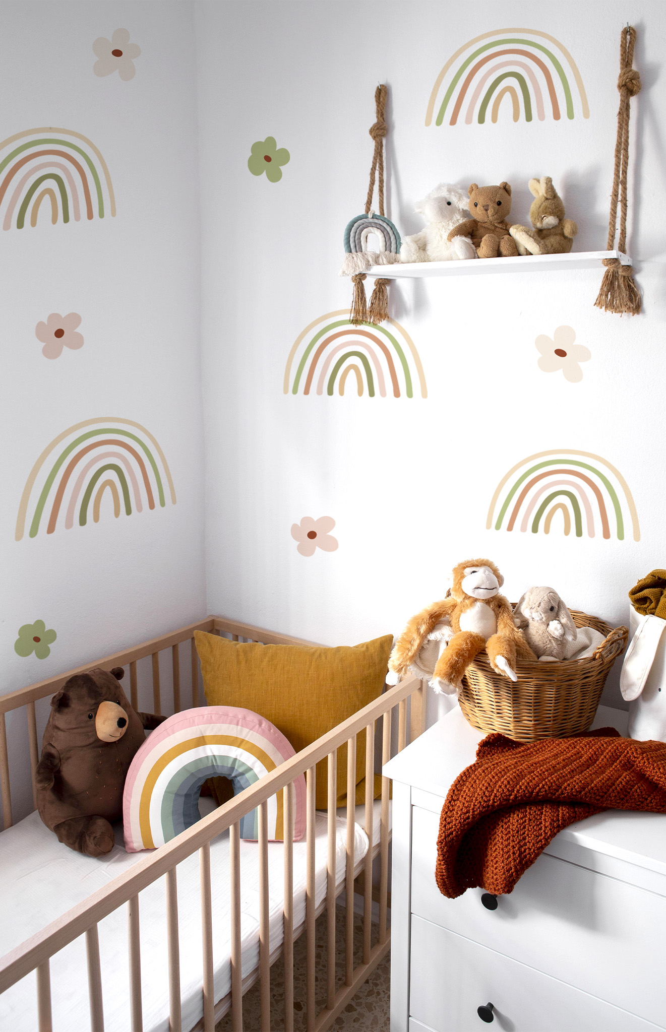 Apportez la magie de l’arc-en-ciel dans la chambre de votre enfant avec nos stickers muraux colorés ! Ce décor enchanteur, avec des arcs-en-ciel doux et des fleurs colorées, crée une ambiance joyeuse et lumineuse, idéale pour éveiller la curiosité et le bonheur des tout-petits.
